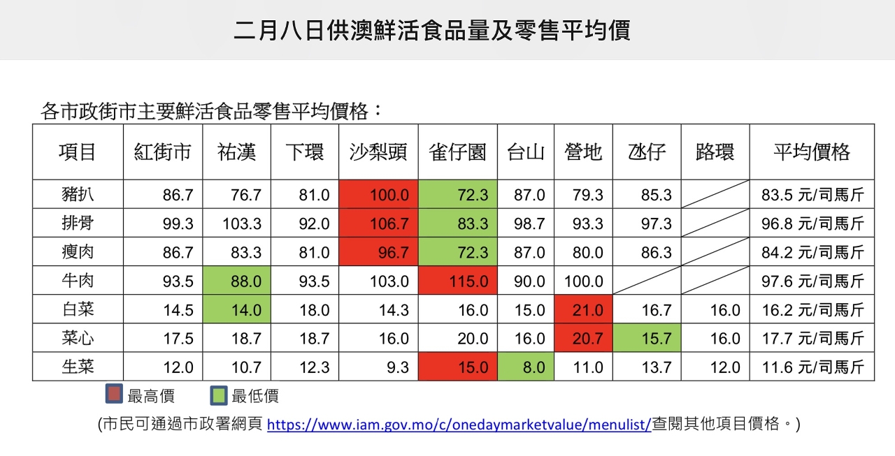 (市民可通过市政署网页https://www.iam.gov.mo/c/onedaymarketvalue/menulist/查阅其他项目价格。)