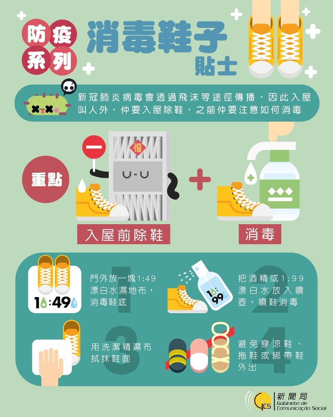 如非必要请留家,但真的要外出,回家时应注意消毒,不要把病毒带到家里;必然接触到地面的鞋子是重点,消毒工作千万不可马虎呀!