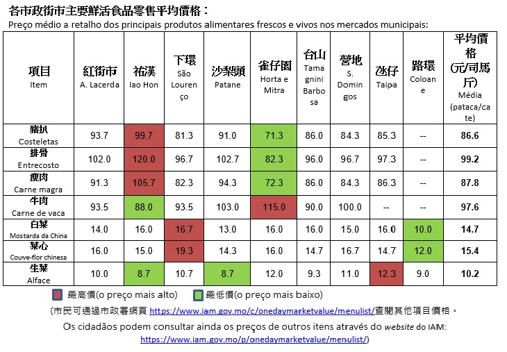 (市民可通过市政署网页https://www.iam.gov.mo/c/onedaymarketvalue/menulist/查阅其他项目价格。)