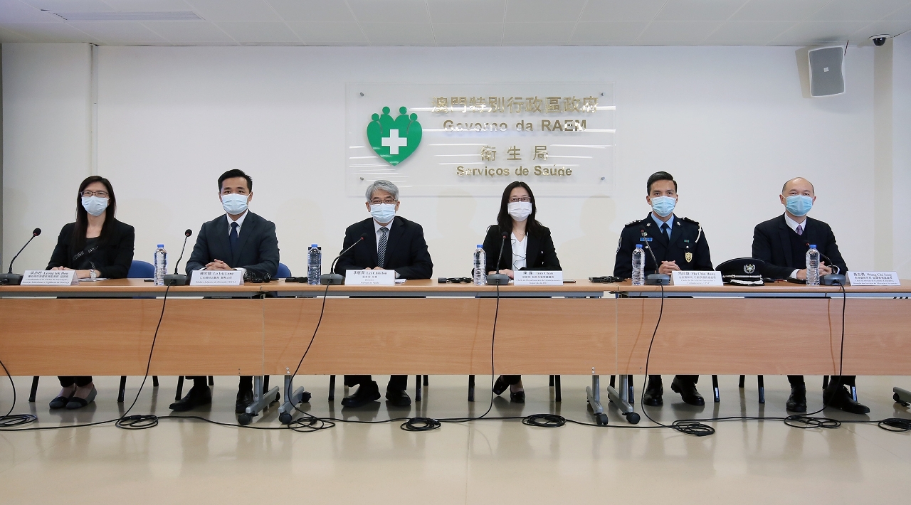 新型冠状病毒感染应变协调中心(下称应变协调中心)于今(3)日举行例行记者会,卫生局李展润局长、旅游局执照及监察厅陈露厅长、仁伯爵综合医院医务主任罗奕龙医生、教育暨青年局延续教育处黄志勇处长、治安警察局行动及通讯处马超雄处长、疾病预防控制中心传染病梁亦好协调员共同会见传媒。