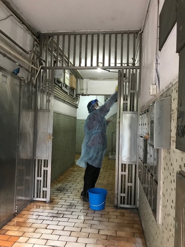 配合新型冠状病毒肺炎的防控工作,市政署于三月三十日协调清洁专营公司及外判清洁加派人手,对一宗香港确诊者在澳门活动期间的居所及曾到访的大厦,进行大型的清洁及消毒工作,包括两座大厦周边的街道、大厦门口及各楼层楼梯等公用空间,尽力减低传染病传播的条件。