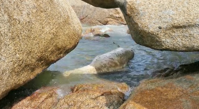路环谭公庙对开石滩发现海豚尸体