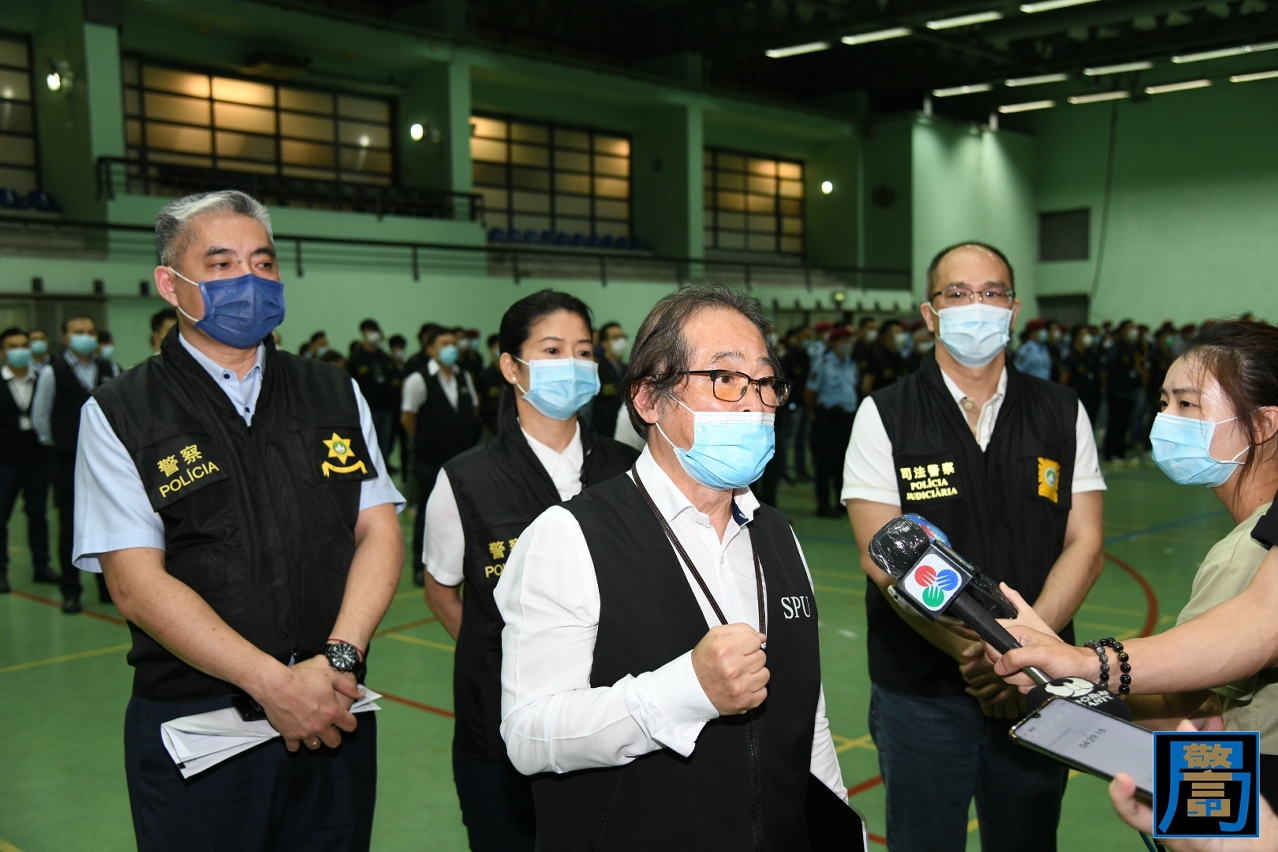 粤港澳三地警方联合警务行动代号“雷霆2020”已于本月18日正式展开。于昨晚(22日)11时,由警察总局统筹和策划,并联同澳门海关、治安警察局及司法警察局彻夜巡查了澳门及路氹多间娱乐场及其周边、夜店、酒吧、桌球室等场所,以及在沿岸及海上加强截查工作,以净化本澳的治安环境。