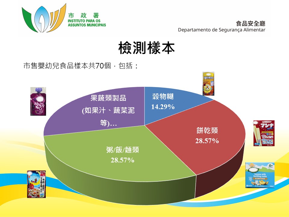 为瞭解本澳市售婴幼儿食品的食用安全情况,市政署抽验七十个婴幼儿辅助食品样本,当中包括谷物糊、饼干、果汁等,进行了重金属和真菌毒素检测,结果显示所有样本均未见异常。
