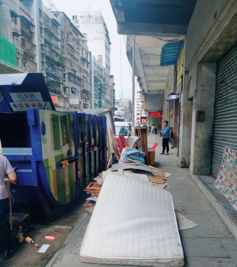 市政署近日发现,有市民把大件家具弃置于沙梨头海边街159号垃圾收集设施旁边,严重影响行人通行。为此,市政署已即时派员协调外判清洁公司进行清理。市政署呼吁市民千万不要贪一时方便,将建筑废料或大件家具随意弃置在公共街道或垃圾收集设施外,而必须运往建筑废料堆填区或焚化中心作妥善处理,否则可被检控。