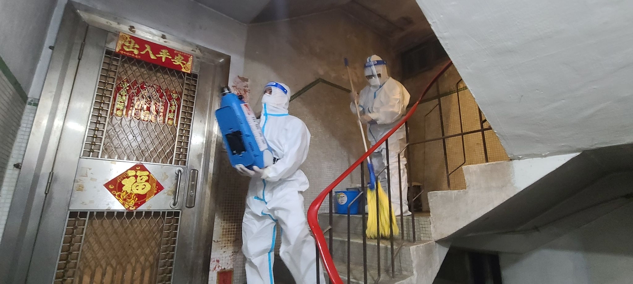 因应新型冠状病毒感染的最新情况并配合防控工作,市政署即时协调清洁专营公司及外判清洁加派人手,于9月25日凌晨对确诊病例居所周边街道、大厦公用部份等区域进行大型清洁及消毒工作,尽力减低传染病传播的条件。