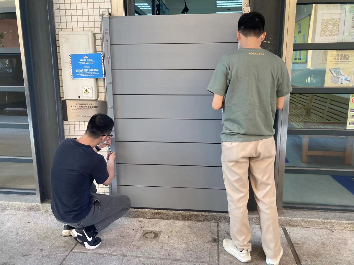 因应风季来临,社会工作局协调处于低洼地区的辖下服务单位及40多间社会服务设施,于本年3月底至5月底期间演练防水闸安装,让工作人员熟习安装步骤,以备在实际操作时能快速有效安装防水闸,发挥防水功能。