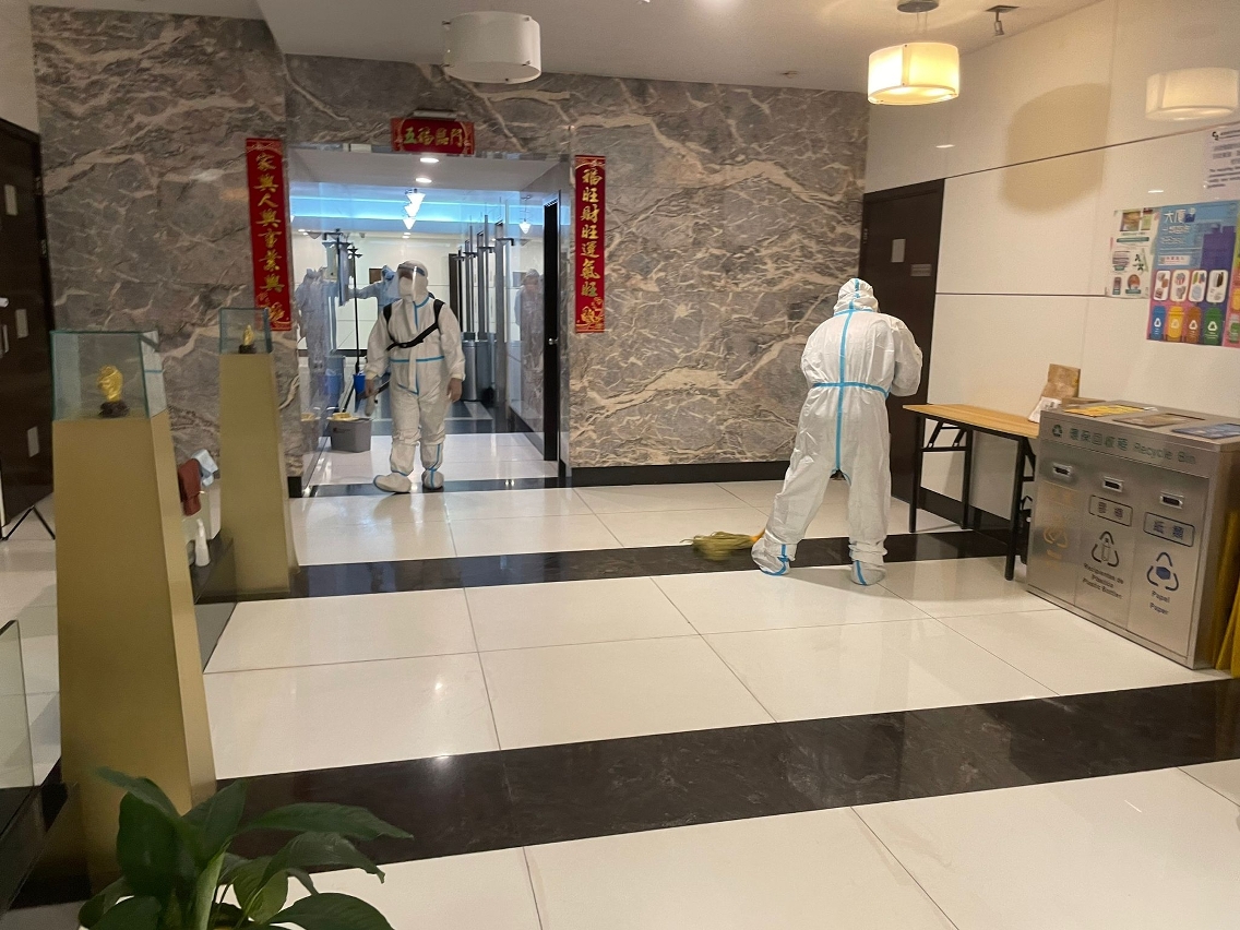市政署对确诊病例居所大厦加强清洁消毒(超级花城)