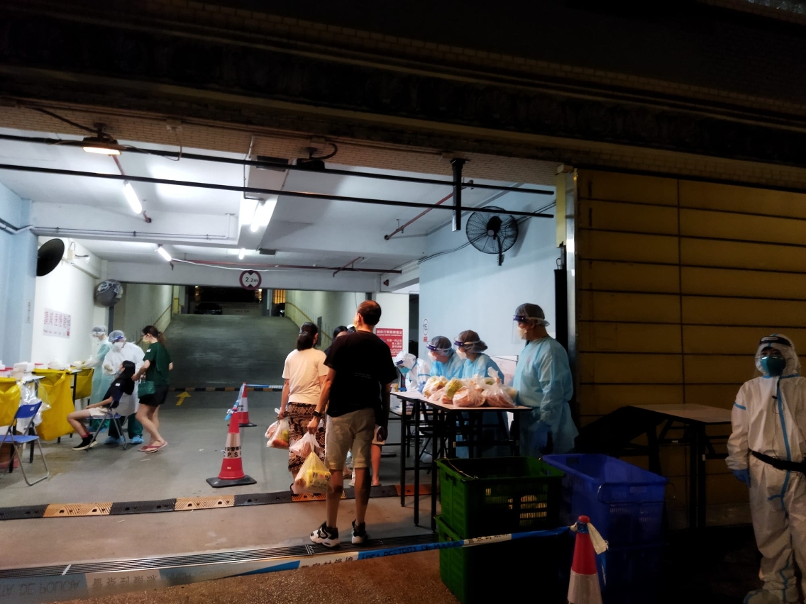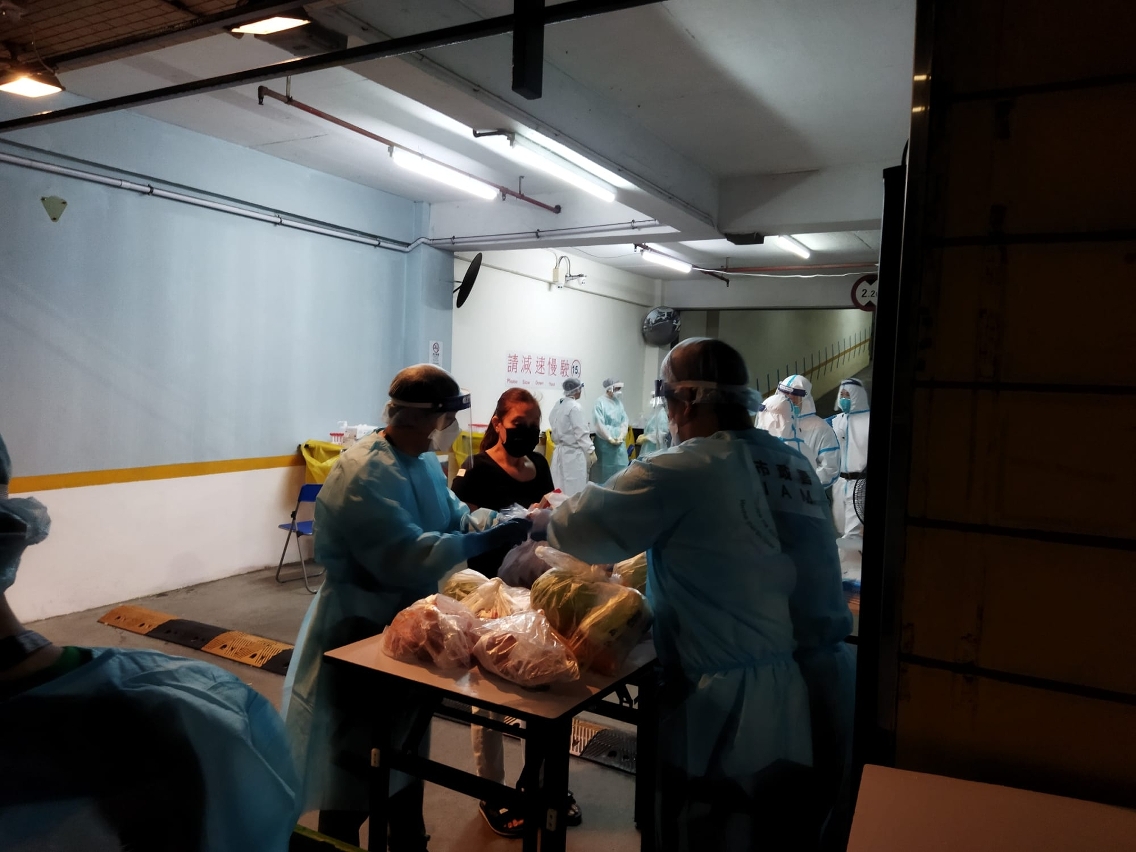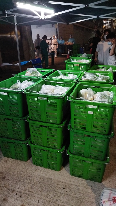 维生支援小组向红码大厦超级花城的住户提供蔬菜冻肉食物包