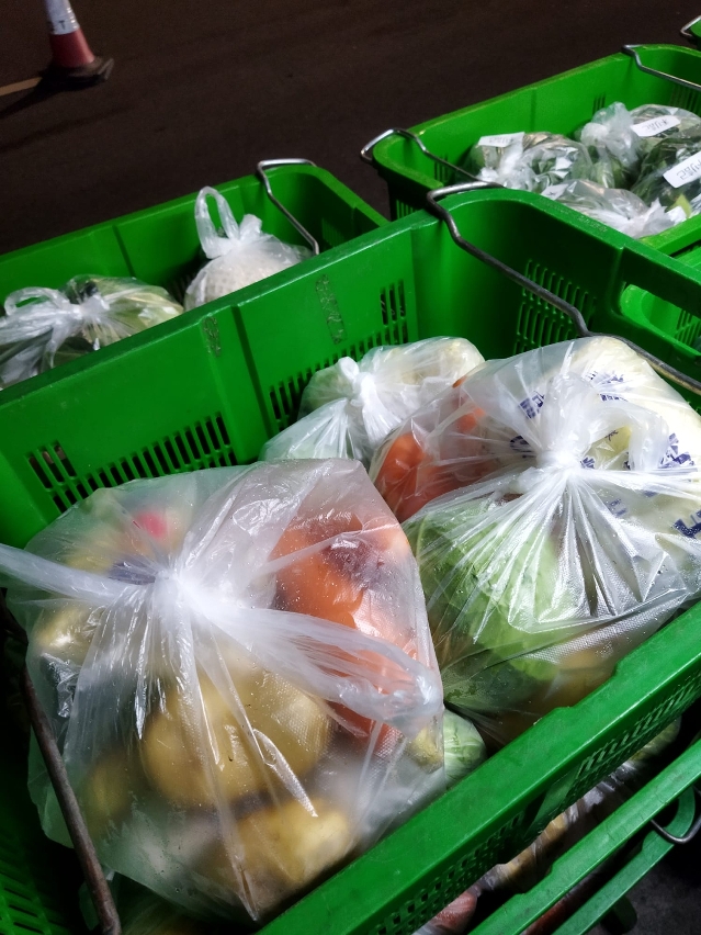 维生支援小组向红码大厦住户提供蔬菜冻肉食物包
