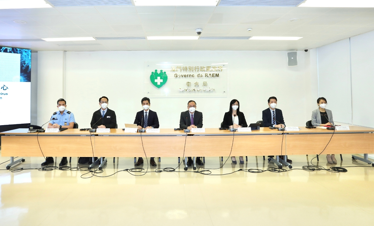 新型冠状病毒感染应变协调中心7月18日举行记者会,卫生局仁伯爵综合医院李伟成医务主任、戴华浩医务主任、疾病预防及控制中心传染病防控处梁亦好处长、警察总局警务联络及公共关系处张健欣处长、治安警察局行动及通讯处马超雄处长、旅游局公共关系处蓝同好处长、教育及青年发展局中学教育处梁怡安处长分别介绍了本澳的整体防疫情况。