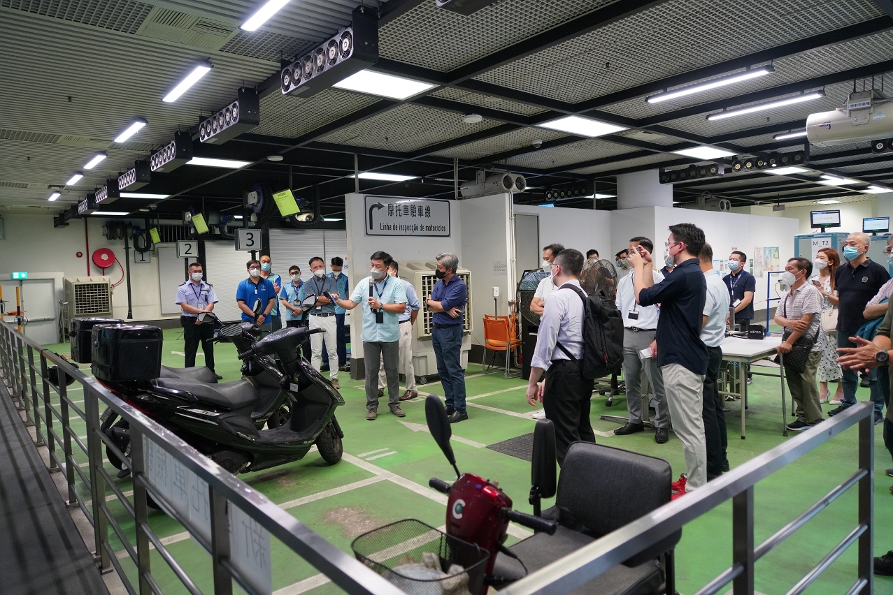交通咨询委员会一行19人于日前(8月29日)参观澳门摩托车检验中心,期间交通事务局介绍新验车系统及设备,以及流程优化安排,委员们基本认同,并对设备及流程等提出建议。