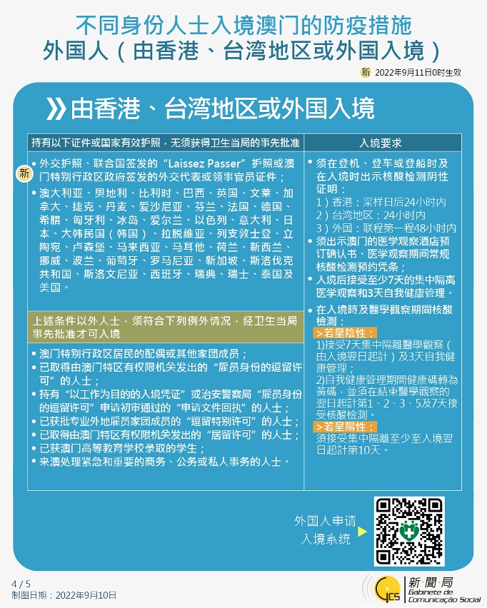 【图文包】最新入境澳门的防疫措施 (2022/9/10)