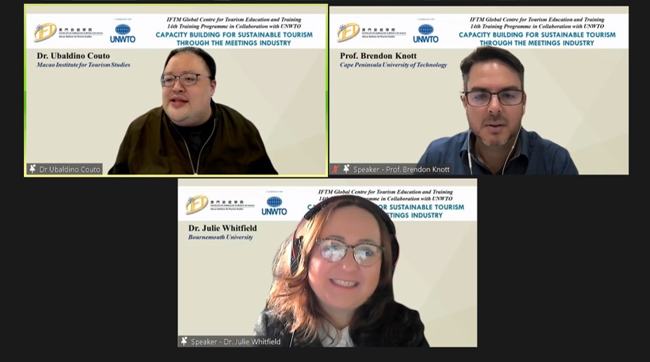 澳门旅游学院世界旅游教育及培训中心与联合国世界旅游组织于2022年12月5 日至7日合作举办了第十四次培训课程,以“透过会议展览业促进可持续旅游的能力建设”为主题,以线上形式进行。