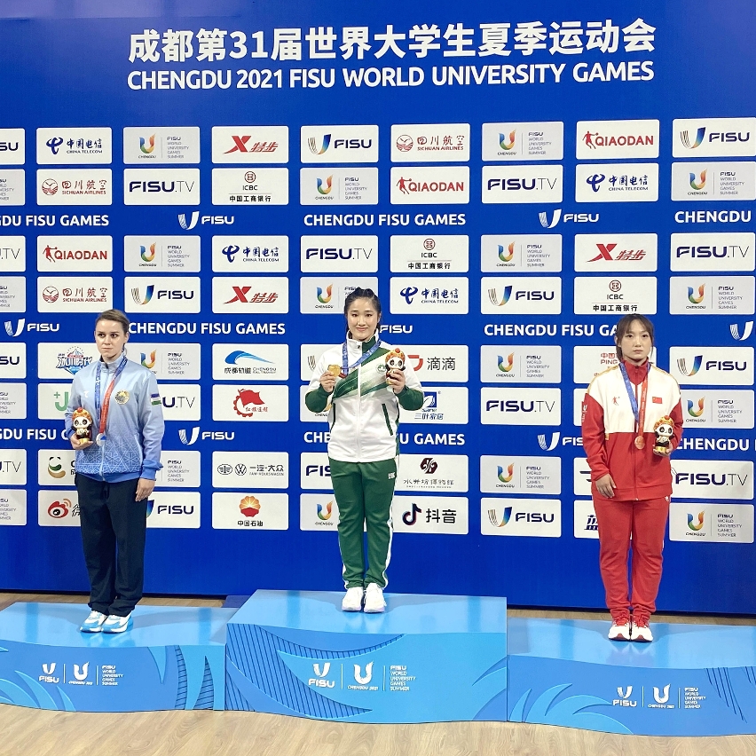 本届世大运共设18个体育项目,澳大派出了25名学生参加其中的7个项目,包括羽毛球、跆拳道、乒乓球等。其中,澳大学生黄心妍在女子南拳和南刀项目中分别摘下金牌和铜牌,为澳门代表团赢得今届赛事的首面金牌和奖牌。