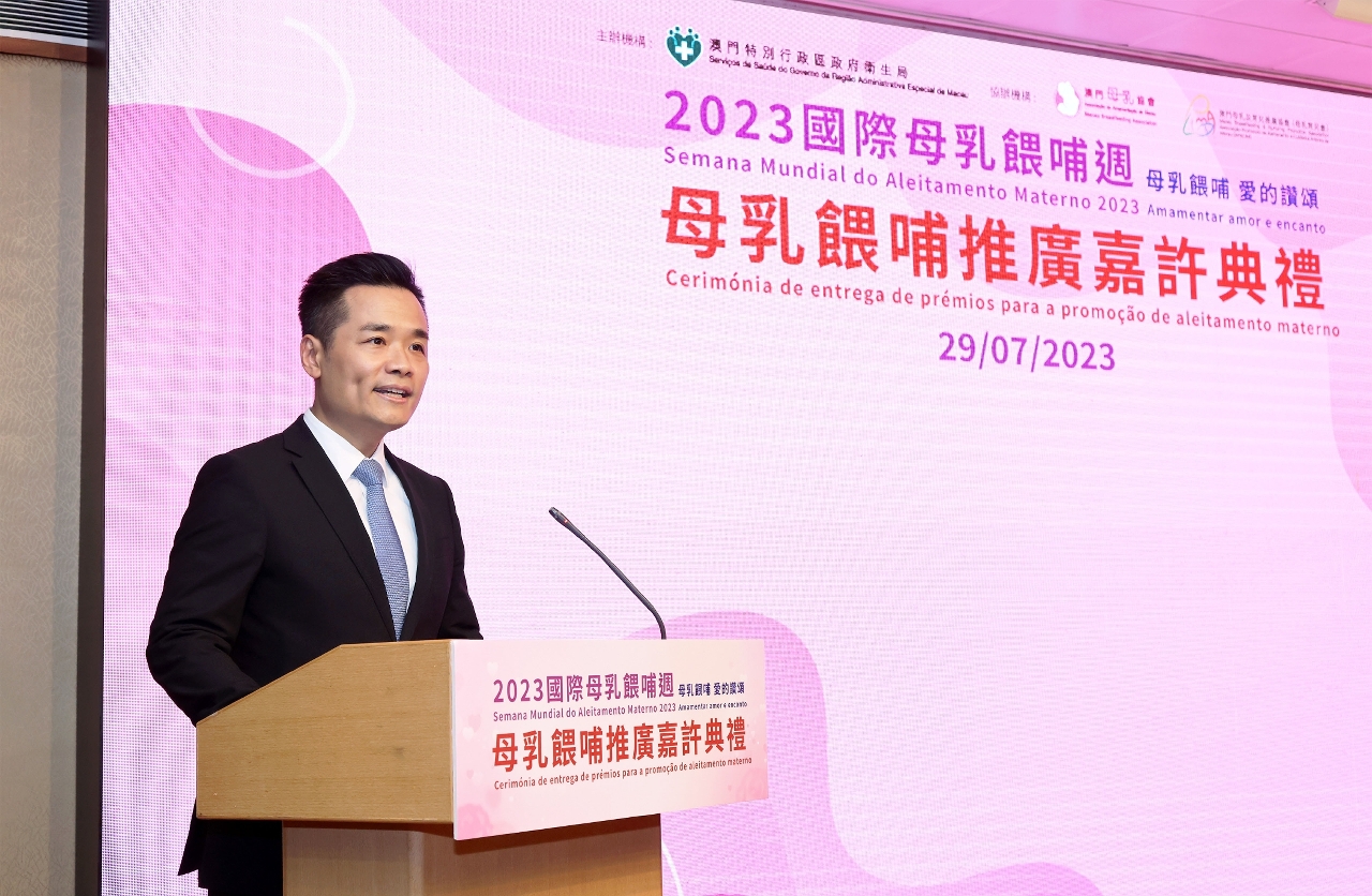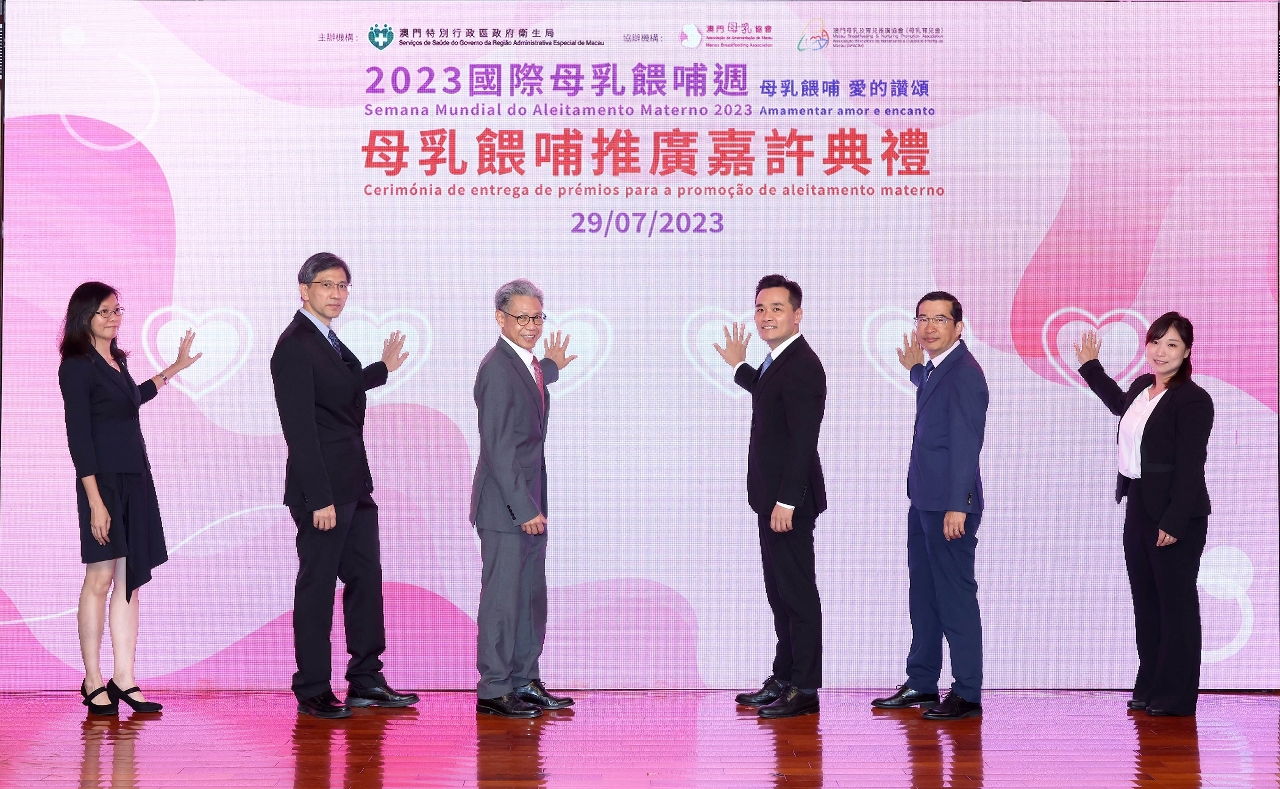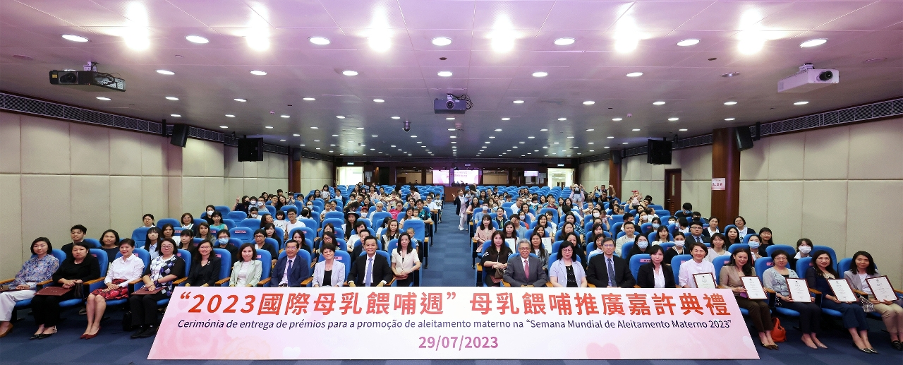 为响应2023年国际母乳喂哺周,由卫生局主办,澳门母乳协会、澳门母乳及育儿推广协会协办的‶2023母乳喂哺推广嘉许典礼″于日前举行,卫生局罗奕龙局长、郭昌宇副局长、郑成业副局长、梁基雄代副局长及多个公私营机构、学校代表等出席典礼,还有44个家庭,约200多人参加是次活动。今年获得颁发嘉许状的公、私营机构共196间,获颁发嘉许状的学校共6间;另分别有245位母乳喂哺的妈妈获得嘉许。