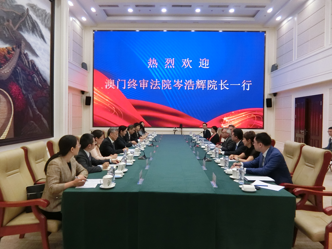 参访期间,代表团分别拜访了国务院港澳事务办公室、全国人大常委会澳门基本法委员会、最高人民法院、最高人民检察院和司法部。国务院港澳事务办公室夏宝龙主任,全国人大常委会澳门基本法委员会沈春耀主任、张勇副主任,最高人民法院张军院长,最高人民检察院应勇检察长和司法部贺荣部长分别会见了代表团,他们均认同自澳门回归以来,澳门特区法院始终恪守宪法和基本法,有效行使基本法赋予的职权,坚定依法维护公平正义、特区宪制法治秩序和国家安全,为澳门经济社会繁荣稳定,为具有澳门特色的“一国两制”成功实践行稳致远,提供了有力保障并作出了重要贡献。岑浩辉院长对内地各部委和国家最高司法机关长期以来对澳门特区法院工作的支持表示感谢,同时就如何进一步加强和推进内地与澳门刑事方面的司法协助、移管被判刑人、完善澳门特区司法机关发出的裁判文书在内地获适当之认证以及两地之间司法人员交流、合作与培训等,与上述机关进行了深入的交流和探讨。
