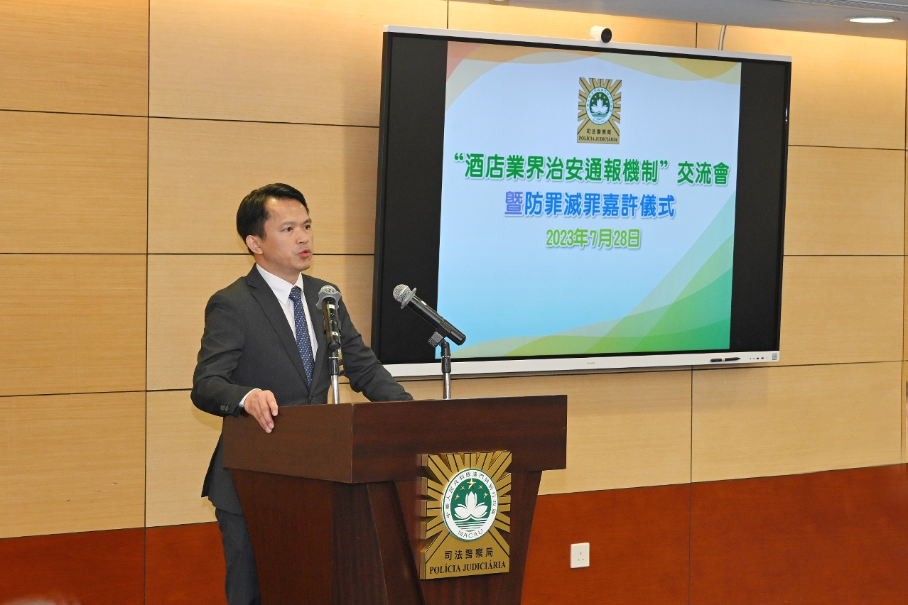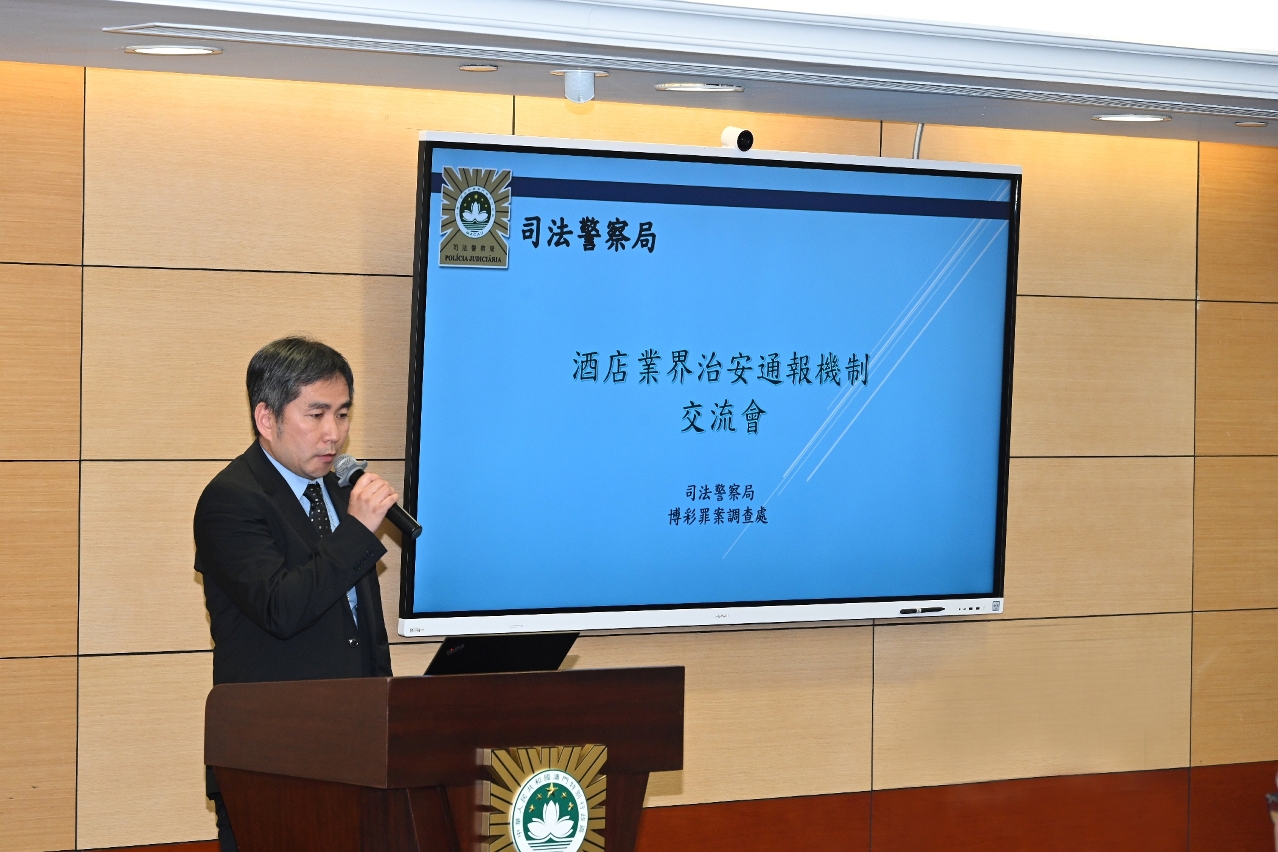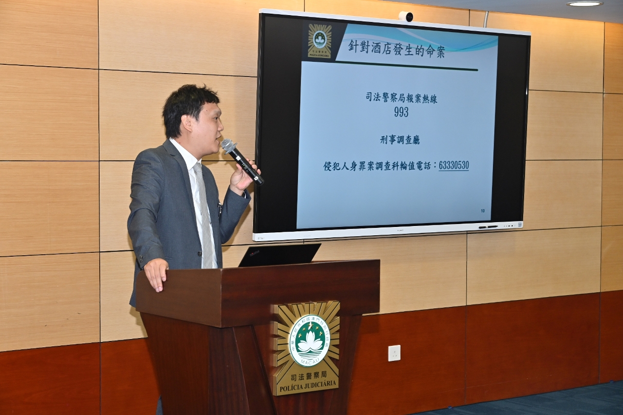 因应今年来澳旅客急增,各旅游景点及酒店设施人流畅旺,与旅游博彩行业相关的违法犯罪情况有所回升,司法警察局举行“酒店业界治安通报机制”交流会暨防罪灭罪嘉许仪式,与业界代表就持续优化现有通报机制、提升前线从业员的防罪意识和能力、加强警民合作防范罪案等议题进行探讨交流。会上,司警局向积极协助执法工作的5间酒店颁发嘉许状。
