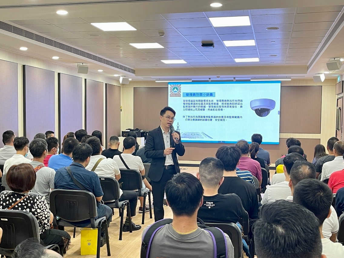 另一方面,司警局为前线物管人员举办“预防入屋盗窃罪案"讲座,讲解最新的入屋盗窃犯罪手法和预防方法,以及司警局报案程序,冀加强从业员的防罪意识和能力,保障大厦安全,讲座约有100人参加。