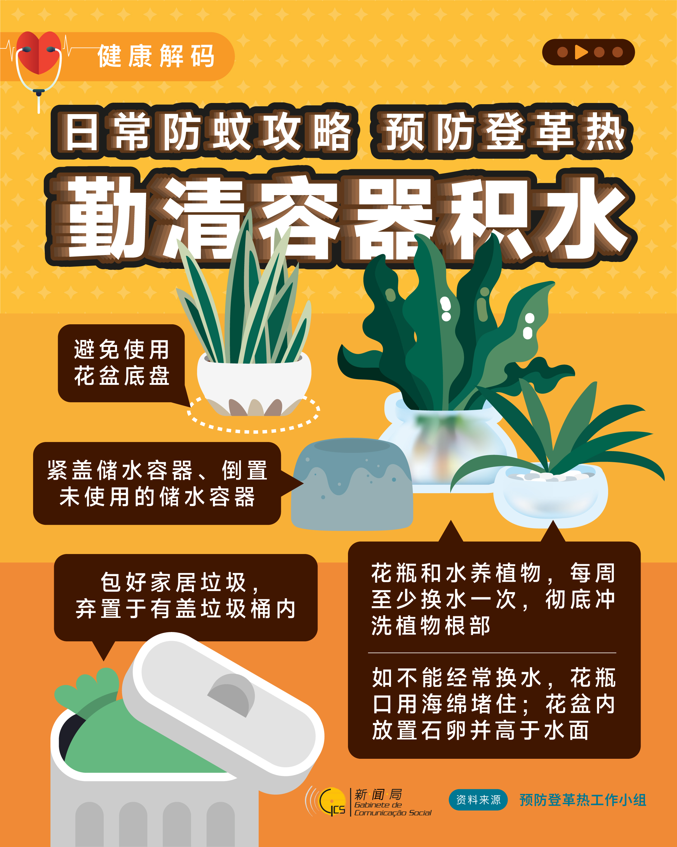 工作小组将持续密切留意澳门邻近地区的登革热流行情况,以作充分应对准备。基于今年登革热传播风险较高,工作小组已制定一系列巡查孳生源及灭蚊等工作,并以深入社区的活动方式向市民宣传预防登革热的讯息,冀共同做好环境清洁及个人防蚊措施,携手预防登革热。