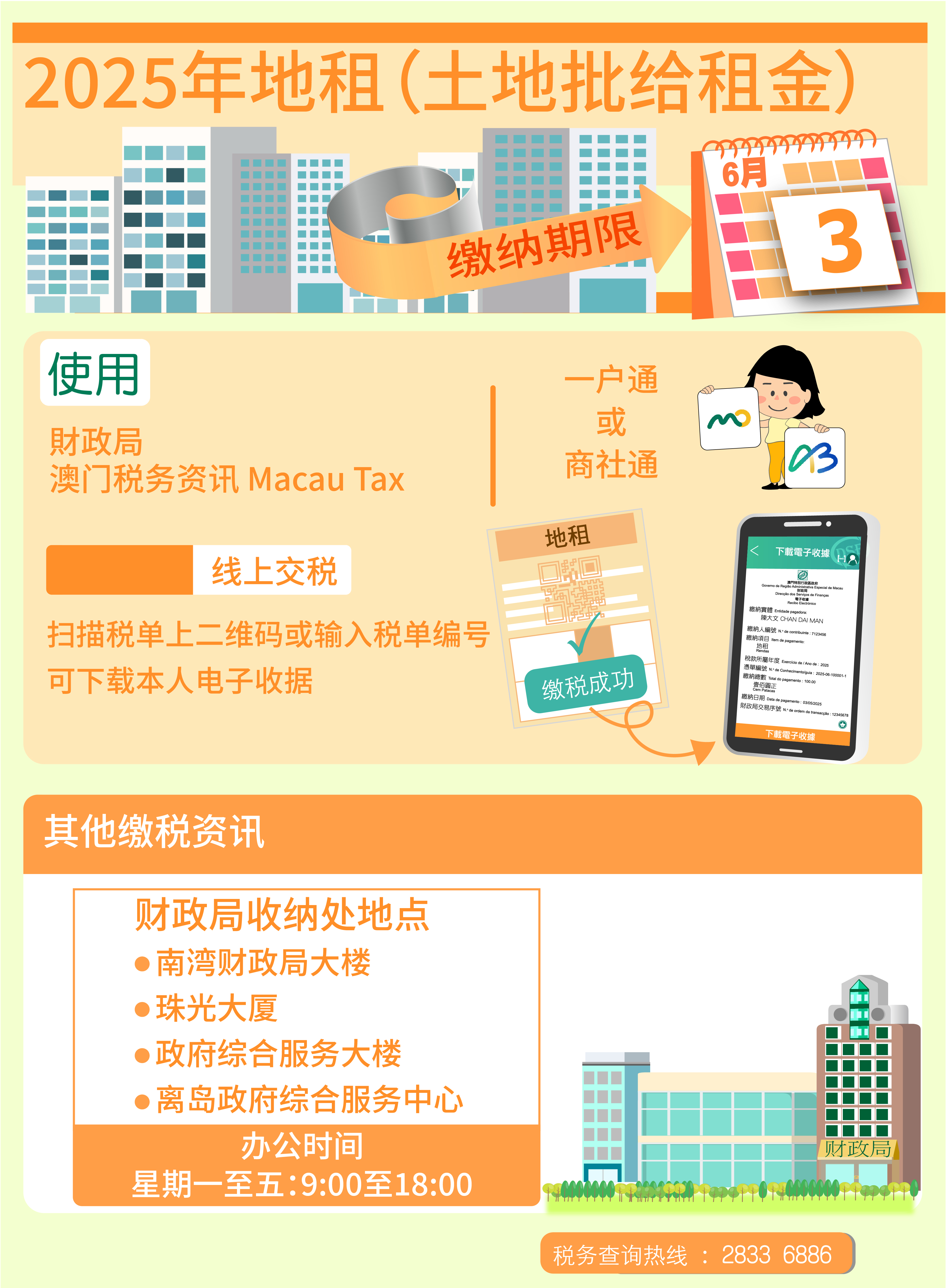 2025年地租(土地批给租金)的最后缴纳期限至6月3日,仍未缴纳上述地租的纳税人应尽快缴纳,避免因逾期缴纳而须附加过期利息和罚款。