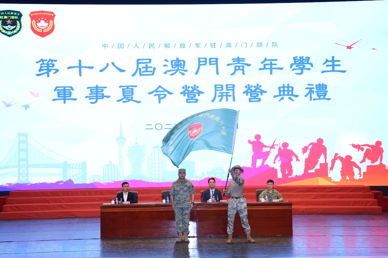 由澳门特别行政区政府与中国人民解放军驻澳门部队合办、教育及青年发展局承办的“第十八届澳门青年学生军事夏令营”于7月12日至18日在驻澳部队氹仔军营进行。中国人民解放军驻澳门部队参谋长邵春贵、法律处处长贺文军、教青局局长龚志明、副局长黄嘉祺、学校领导及代表,以及来自34所高等院校及非高等教育学校,共159名澳门青年学生出席了7月12日的开营礼。