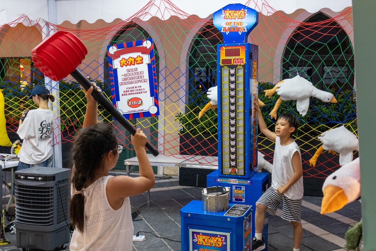 嘉年华欢迎所有年龄的人士参与,期望大人或小孩都能乐在其中。现场特设游戏区为大家准备了6款趣味游戏,包括:神勇大力士(敲击类游戏)、飞斧战士(投掷类游戏)、穿越火线(电流棒游戏)、笑掉大牙(投掷类游戏)、眼明手快(手眼协调游戏)以及保龄滚滚乐(球类游戏),让大家在暑假期间,尽情玩乐。
