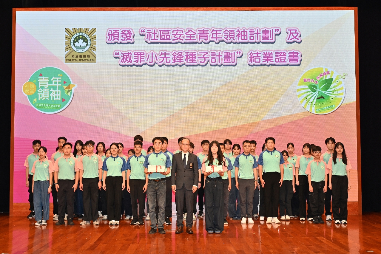 为配合澳门特区政府青年政策,增强青少年的爱国爱澳思想,提升社会责任感和法治意识,司法警察局举办第七届“社区安全青年领袖计划”及第十二届“灭罪小先锋种子计划”结业礼暨新一届计划启动礼。司警局薛仲明局长勉励学员遵纪守法、维护正义,将所学所得转化为服务社会的实际行动,为青年群体树立榜样,为维护国家与澳门安全贡献青年力量。