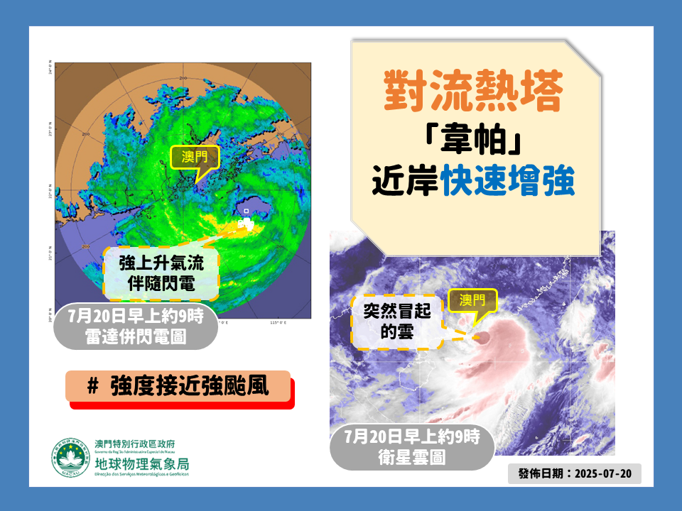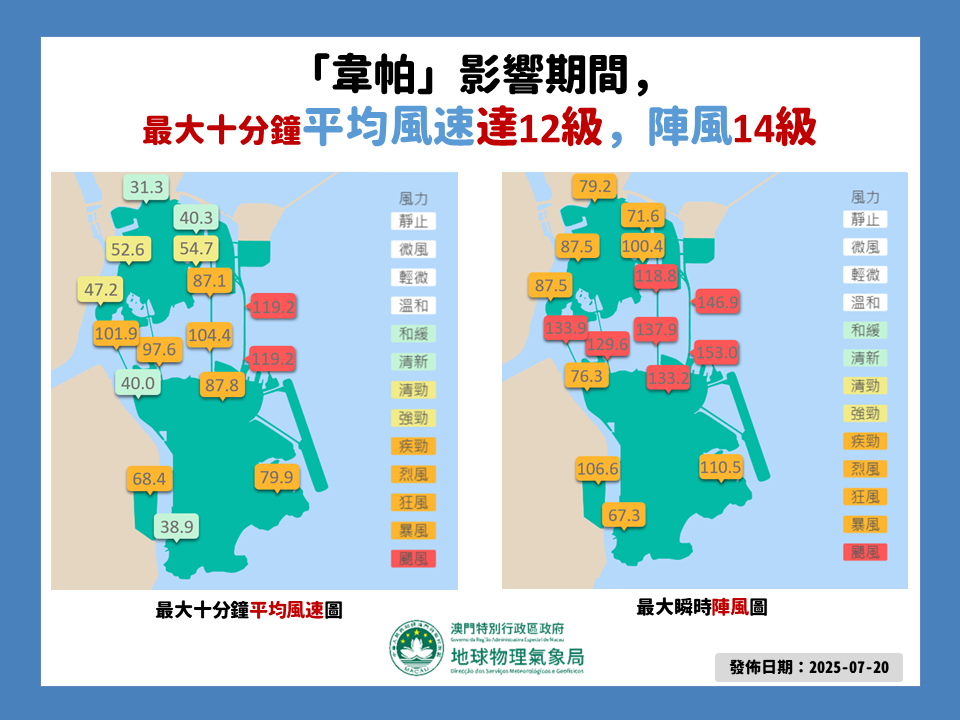 「韦帕」成为自2017年来,9年内本澳第5个需要发出十号风球的热带气旋。同时,亦是自1968年有记录以来,发出日期最早的十号风球(旧记录:布伦登,发出日期:24/07/1991),「韦帕」有何特点? 一齐回顾一下~