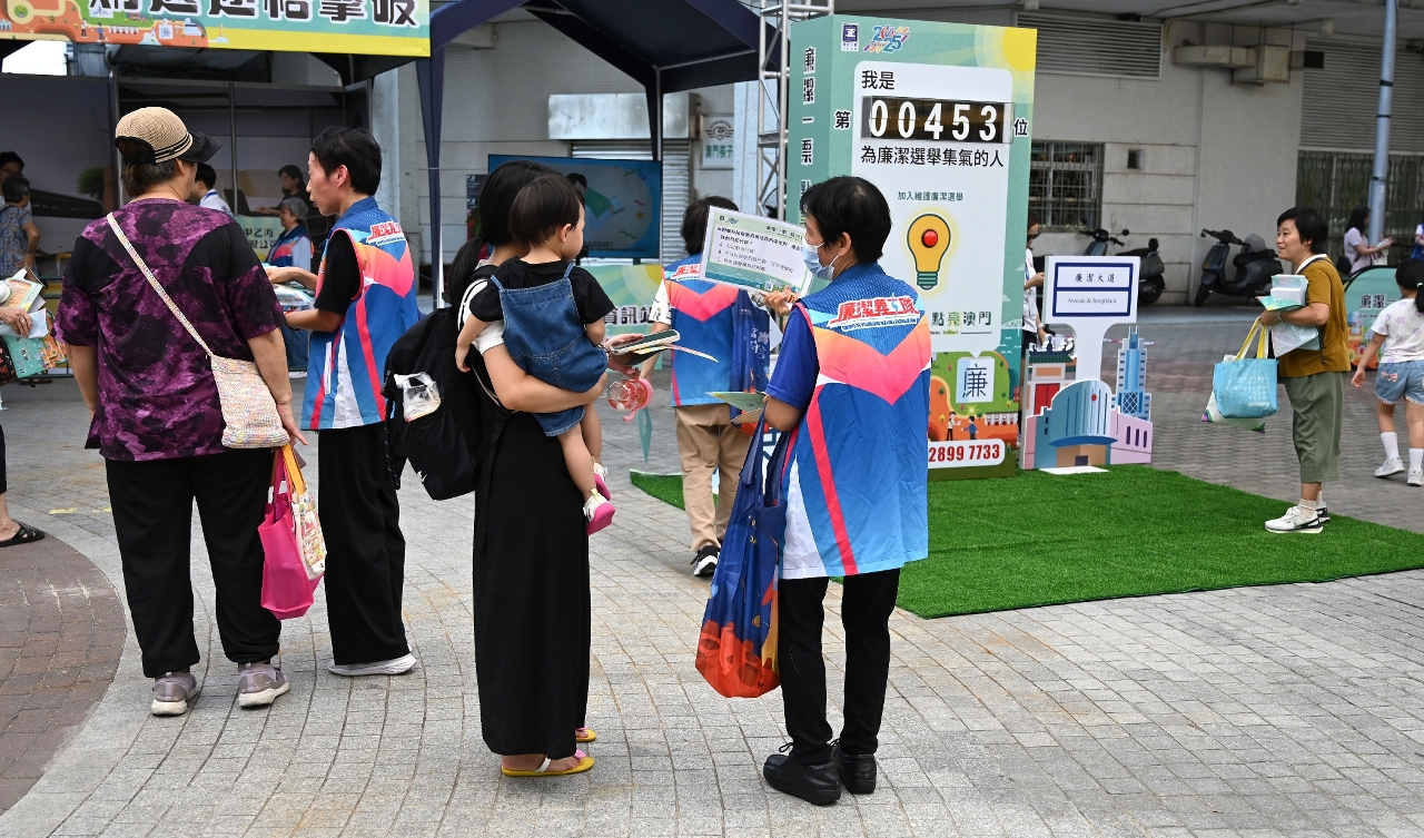 现场设多个摊位游戏、手机解谜游戏及集气打卡装置,引导市民识破贿选陷阱,加强对廉洁选举的认知及关注。另有廉洁选举话剧演出,“廉政熊威廉”也到场与民同乐。参加活动的市民只要完成廉洁选举任务,便可换领精美纪念品。