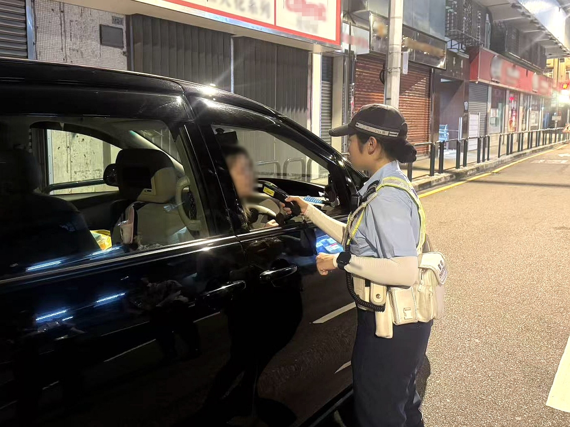 查车行动方面,共截查53辆车辆,合共检控14宗违例(11宗行驶中使用手提电话、1宗行驶时没有开启车灯、1宗未安装识别标志(俗称P牌)及1宗驾驶资格未满一年载客)。