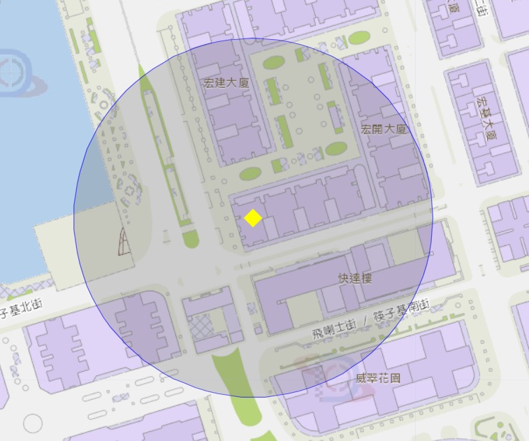 俾约翰街宏开大厦第9座附近风险区域100米半径范围