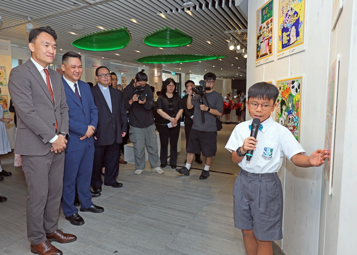 活动上,龚志明局长向非高等教育及高等教育教师团体代表致送以“尊师重道"及“教育家精神”为题的纪念邮品,以及由国家教育部联合中央广播电视总台推出的《教育家精神》纪录片,希望广大教师能从片中了解理想信念、道德情操、育人智慧、躬耕态度、仁爱之心、弘道追求这六个要求。随后,教师节海报及漫画获选作品学生代表向嘉宾作展品导赏,藉著作品表达对老师的感谢。