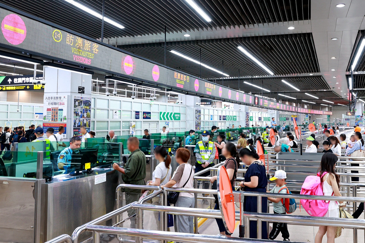 内地为期八天的国庆中秋长假(10月1日至10月8日),适逢澳门五天及香港四天的公众假期,在内地与香港居民来澳旅游,迭加澳门居民北上出行的双向流动效应下,各口岸迎来出入境客流高峰。治安警察局提前制订各项部署,抽调充足警力支援前线工作,保障各口岸通关畅顺与安全;此外,因应旅客量增加,治安警察局在人流密集区、旅游热点及交通枢纽增派警力维持公共秩序,同时配合国庆中秋庆祝活动,在活动场地周边派员协助疏导人流和车流,全力确保治安稳定与道路畅通。