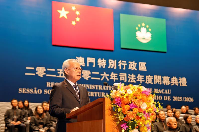 澳门特别行政区2025/2026年司法年度开幕典礼于10月21日下午3时30分假澳门文化中心综合剧院举行,典礼由行政长官岑浩辉主持,立法会主席张永春、终审法院院长宋敏莉、行政法务司司长黄少泽、检察长唐晓峰、推荐法官的独立委员会主席刘焯华和澳门律师公会理事会主席黄显辉列席主礼台。