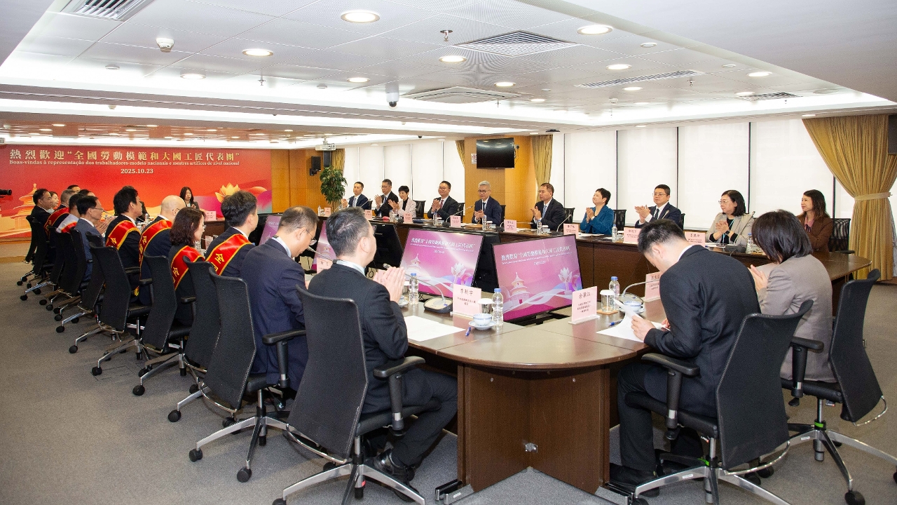 戴建业代表澳门特区政府,对代表团访澳表示热烈欢迎,并向全总成立100周年致以祝贺。戴建业表示,希望通过代表团访澳的系列活动,让本澳各界特别是广大劳动者,深刻领会劳模精神、劳动精神与工匠精神,在各自岗位上追求卓越,为澳门发展贡献力量。同时,代表团的劳动模范、大国工匠均是来自不同专业领域的杰出劳动者,其专业背景与澳门“1+4”经济适度多元战略布局高度契合,期待代表团能为本澳相关产业的发展部署,提供宝贵经验和建议。