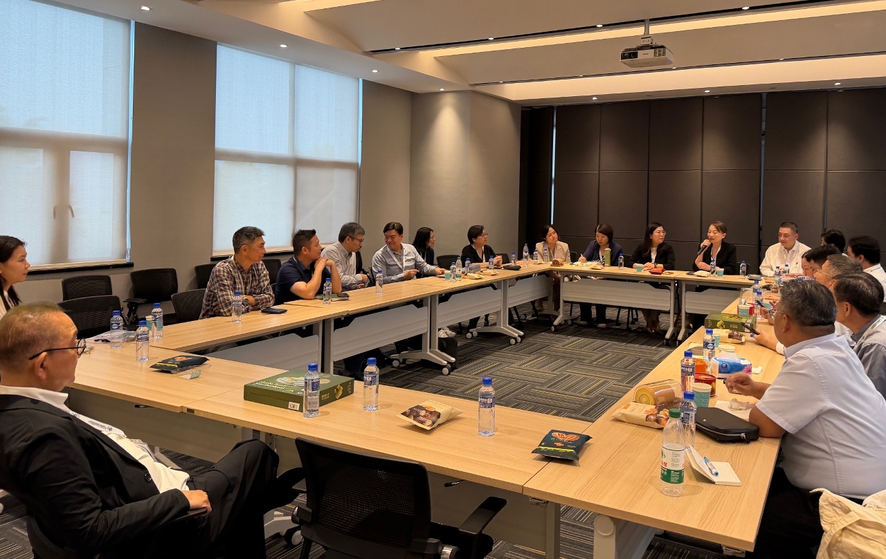 美心公司对外事务部及品控部王哲高级经理介绍时表示,作为集团在中国内地最大的食品生产基地,江门厂房面积达1,000,000平方呎,自2021年3月如期投产以来,食品厂透过数据分析和监控以灵活调整生产参数,提升生产效率同时减少资源浪费,以实现可持续发展的目标。参观期间,考察团成员亦与美心集团行政总厨、烘焙研发部及物流部代表进行座谈,深入交流食品研发标准、通关及智慧物流等议题。
