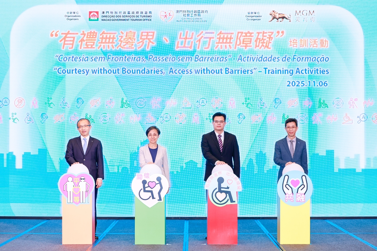 由旅游局及社会工作局共同举办、美高梅协办的“有礼无边界、出行无障碍”培训活动于11月6日假美狮美高梅宴会厅举行。活动中详细介绍了“十五运会和残特奥会比赛场地室内无障碍导航系统”,并针对不同需求进行“无障碍”接待技巧培训,旨在提升旅游业界及运动会志愿者的无障碍服务水平,进一步推动无障碍共融社会建设,同时促进澳门旅游业高质量发展。