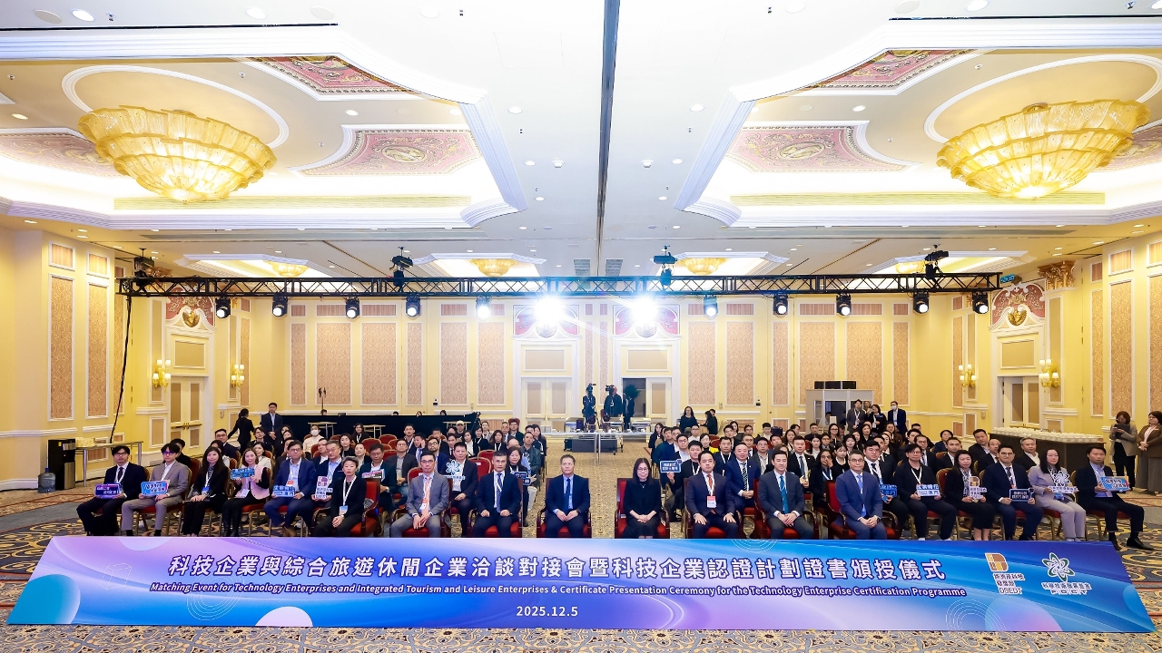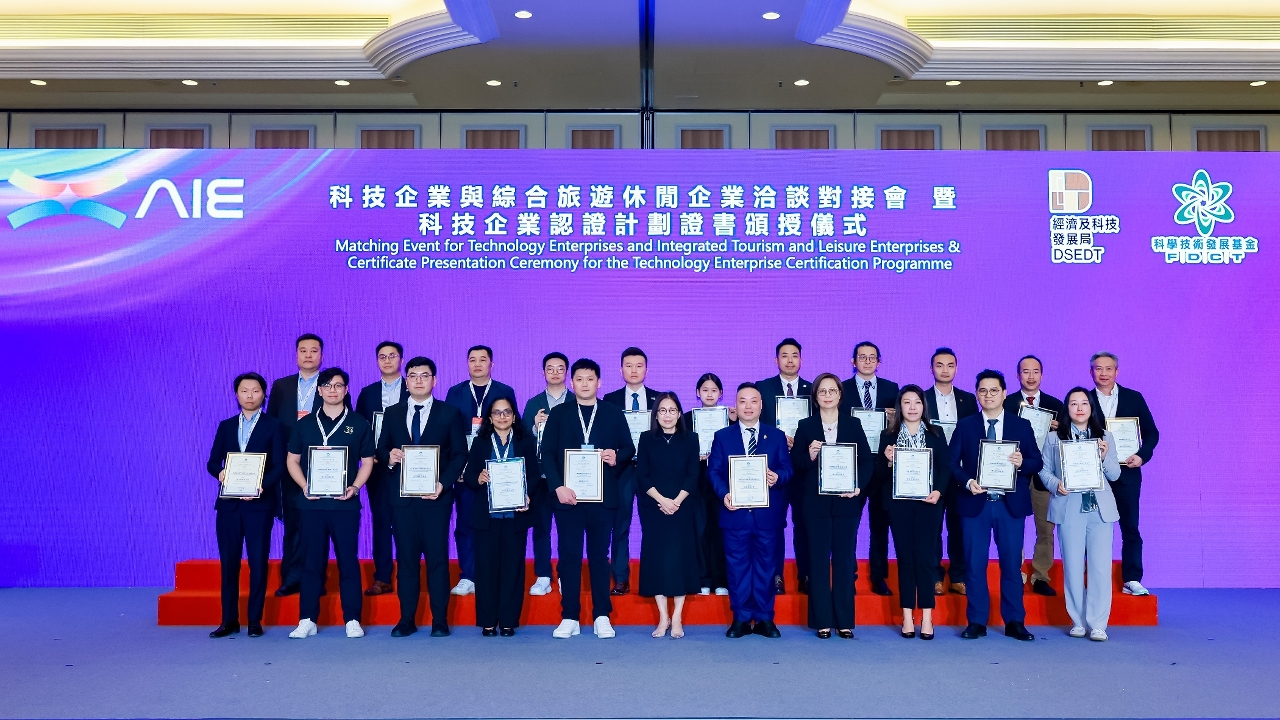 由经济及科技发展局(下称“经科局”)和科学技术发展基金(下称“科技基金”)主办的“科技企业与综合旅游休闲企业洽谈对接会暨科技企业认证计划证书颁授仪式”(下称“对接会”)今(5)日假澳门威尼斯人举行,是今年“全球智能机械与电子产品博览会”(下称“AIE”)的系列活动之一。经科局代局长郑晓敏、科技基金行政委员会委员郑冠伟、6间综合旅游休闲企业代表、获颁授《科技企业认证计划》认证证书的科技企业,以及AIE“澳门创科馆”参展企业代表等逾100人出席。