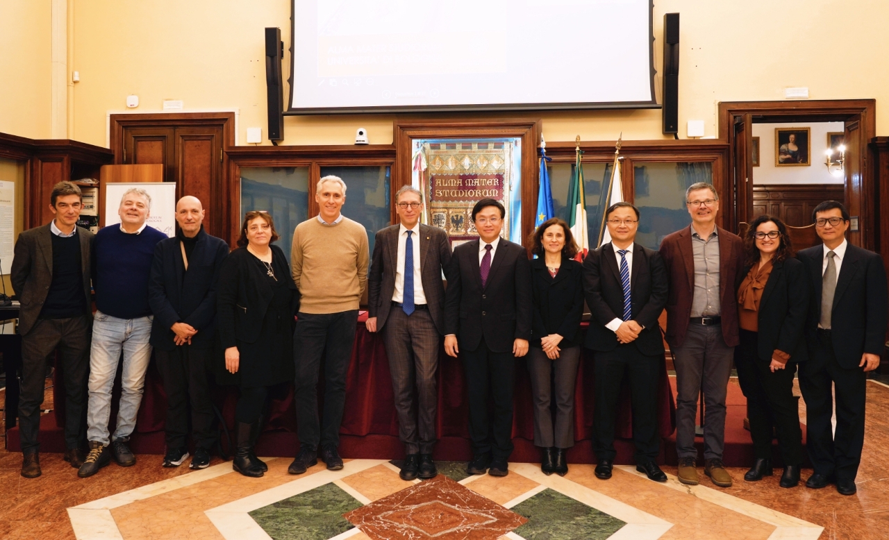 出席签约仪式的博洛尼亚大学代表还包括副校长(国际关系)甘班娜(Raffaella Campaner)、计算机科学与工程学院院长Andrea Omicini、计算机科学系主任Paola Salomoni、智慧出行汽车工程系主任Davide Moro,以及副主任Nicolo Cavina。