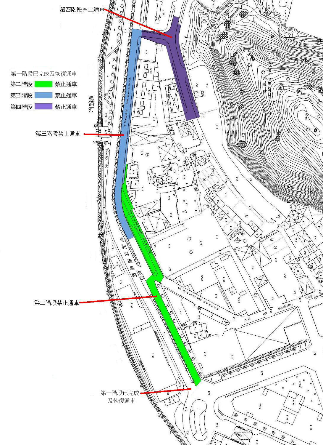 為了減低工程對交通道路的影響,是項下水道工程以分階段形式進行。首階段工程已於本月完成及恢復通車,四月一日起接續進行第二階段工程,施工期間實行有限度通車及維持雙向行車。在第二至第四階段工程進行期間,將分段封閉青洲河邊馬路其中一邊的行車線。是項工程內容包括平整及開挖;鋪設清、污水下水道系統;回填;重鋪行車路面、停車位、行人路及相關設施。