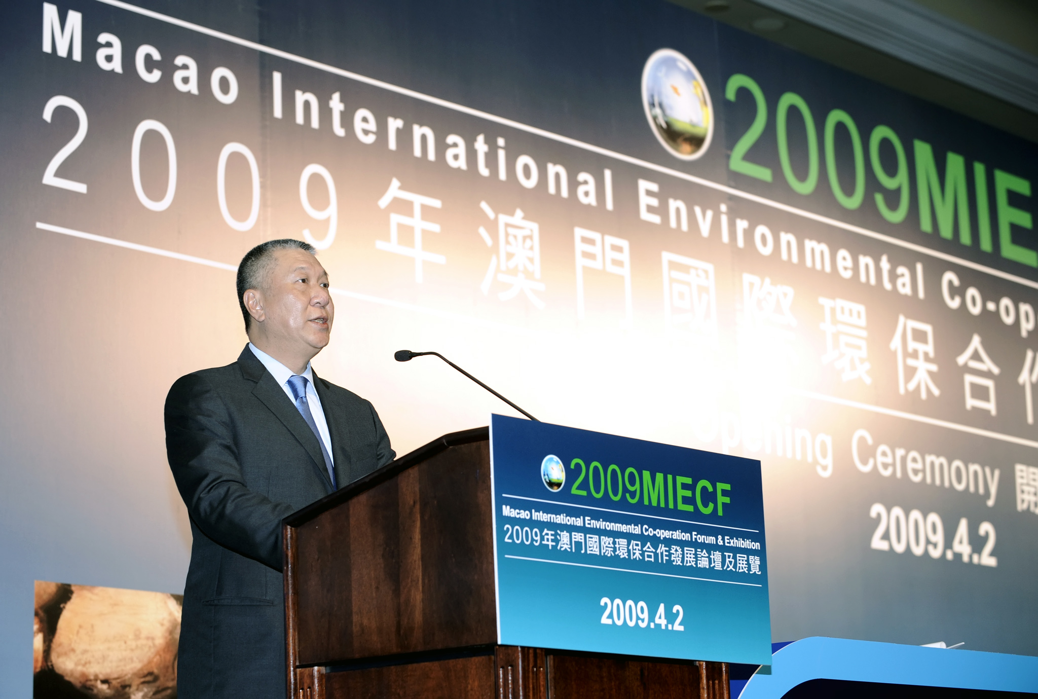 他表示,「澳門國際環保合作發展論壇及展覽」上,各地政府、學者和企業家合力建立了一個回應環境議題的平台。他並代表澳門特別行政區政府,感謝中華人民共和國國家發展和改革委員會以及中華人民共和國環境保護部作為大會的特邀支持單位以及泛珠三角省/區政府作為大會的協辦單位。