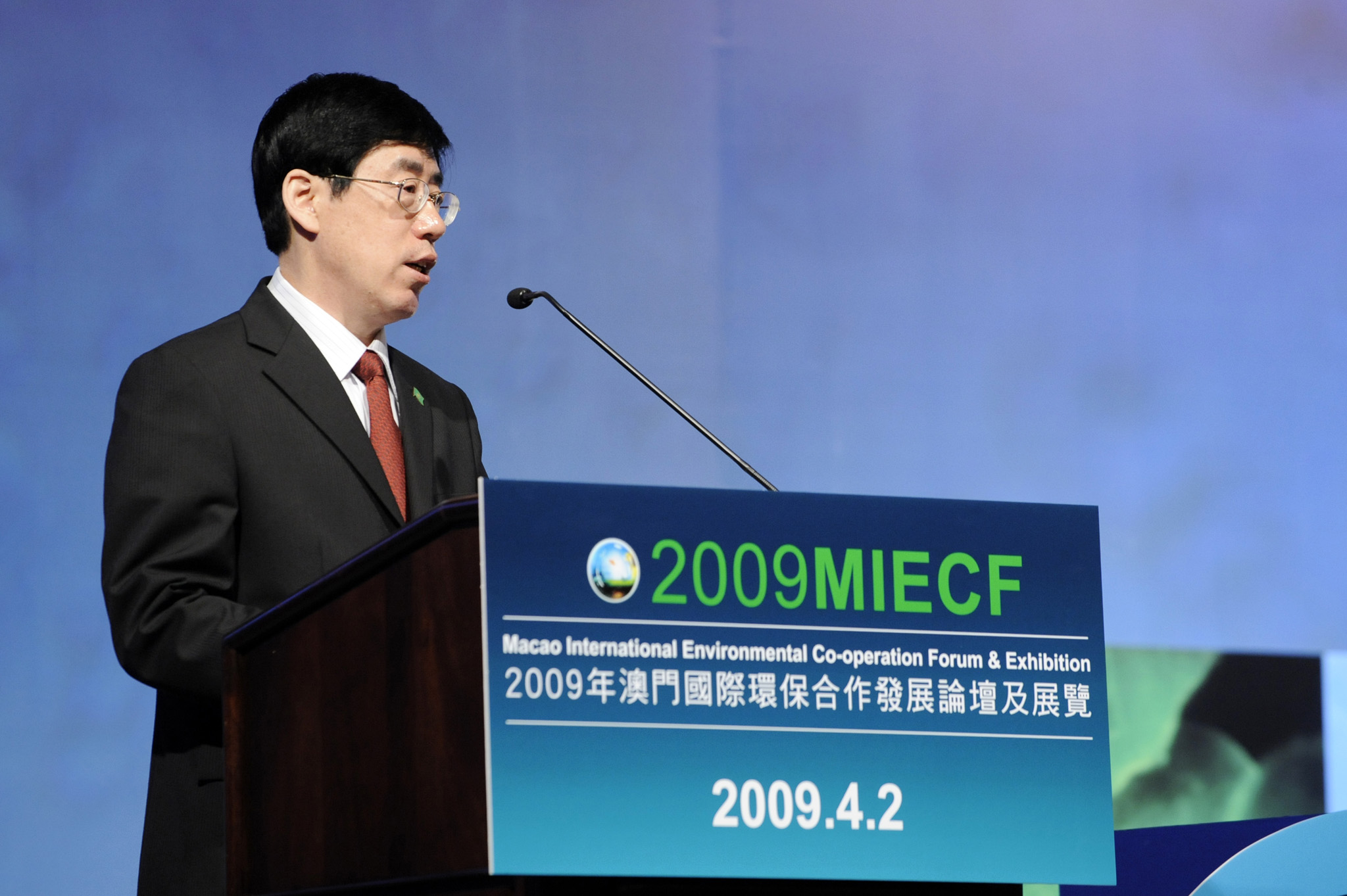 隨後,環境保護部周生賢部長之代表、環境保護部國際合作司副司長岳瑞生介紹了中國在過去一年在環保工作上取得的各項成果。他提到,今年中央政府全面實施促進經濟平穩較快發展的一藍子計劃,包括實施4萬億元的兩年政府投資計劃,其中用於節能減排和生態工程的金額約2,100億元,這將為環保領域提供了難得的發展機會。他期望2009MIECF中能看到一批適合中國國情與環保現狀的先進技術,並在適當的時候引入,深化中國污染防治與生態保護的工作。