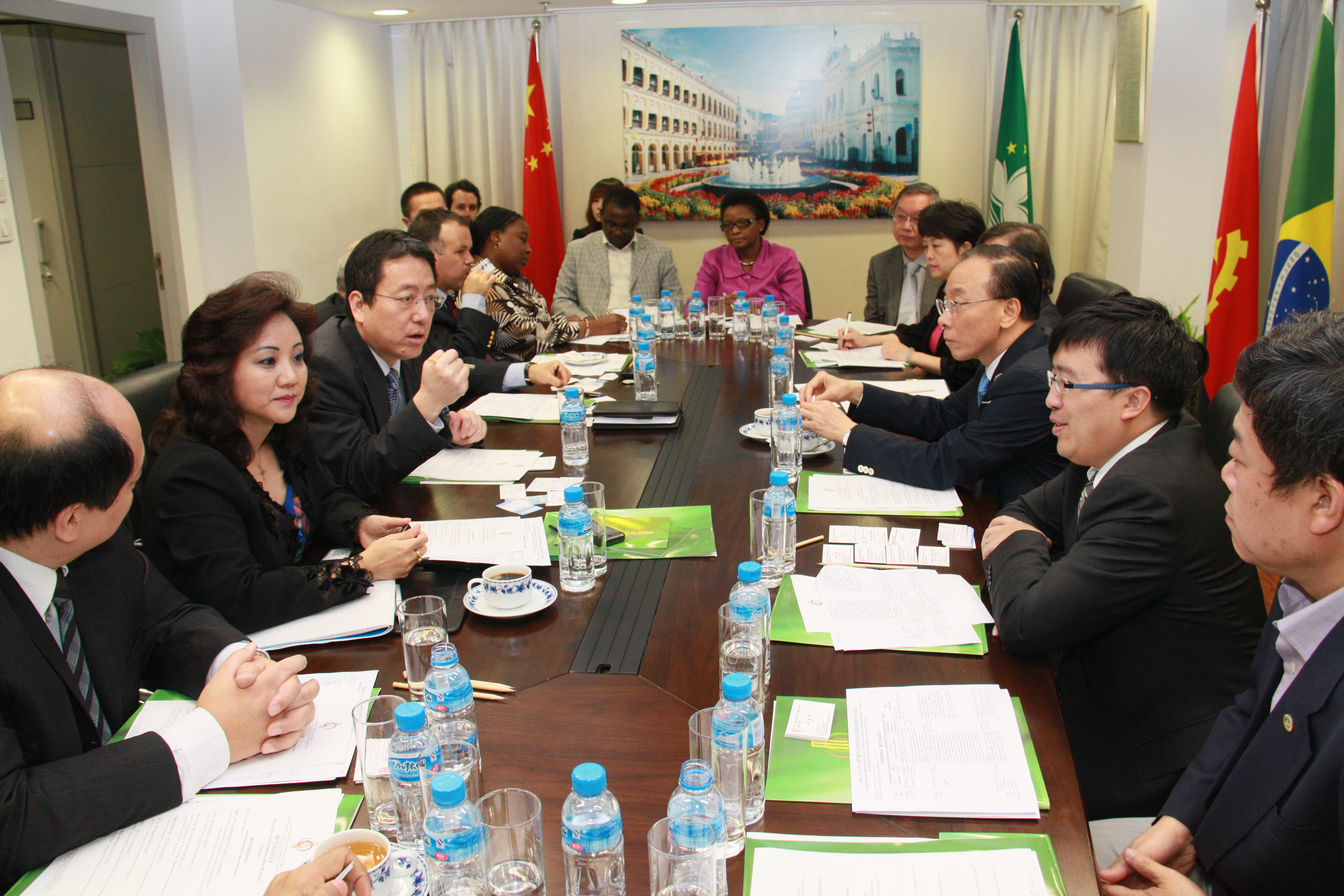 座談會由中葡論壇常設秘書處常和喜秘書長主持,中葡論壇副秘書長羅茂德、輔助辦公室主任姍桃絲、行政辦公室主任龐建、聯絡辦公室主任暨幾內亞比紹派駐代表弗洛齊尼亞‧蒙特羅、安哥拉派駐代表若阿金‧佩雷拉‧達伽馬、佛得角派駐代表法蘭西斯科‧蒙德斯、莫桑比克派駐代表埃斯梅拉爾達‧派特裡西奧、葡萄牙派駐代表郭善彬和出席了會議。座談會上,各葡語國家派駐代表和中華總商會會員企業就包括進出口食品、飲料和海產品、在杭州、蘇州、上海和廣西地區設立葡語國家產品展銷館、開發中國內地市場的環保產業以及開拓葡語國家旅遊市場等感興趣的項目和具體的合作領域充分交換了意見。