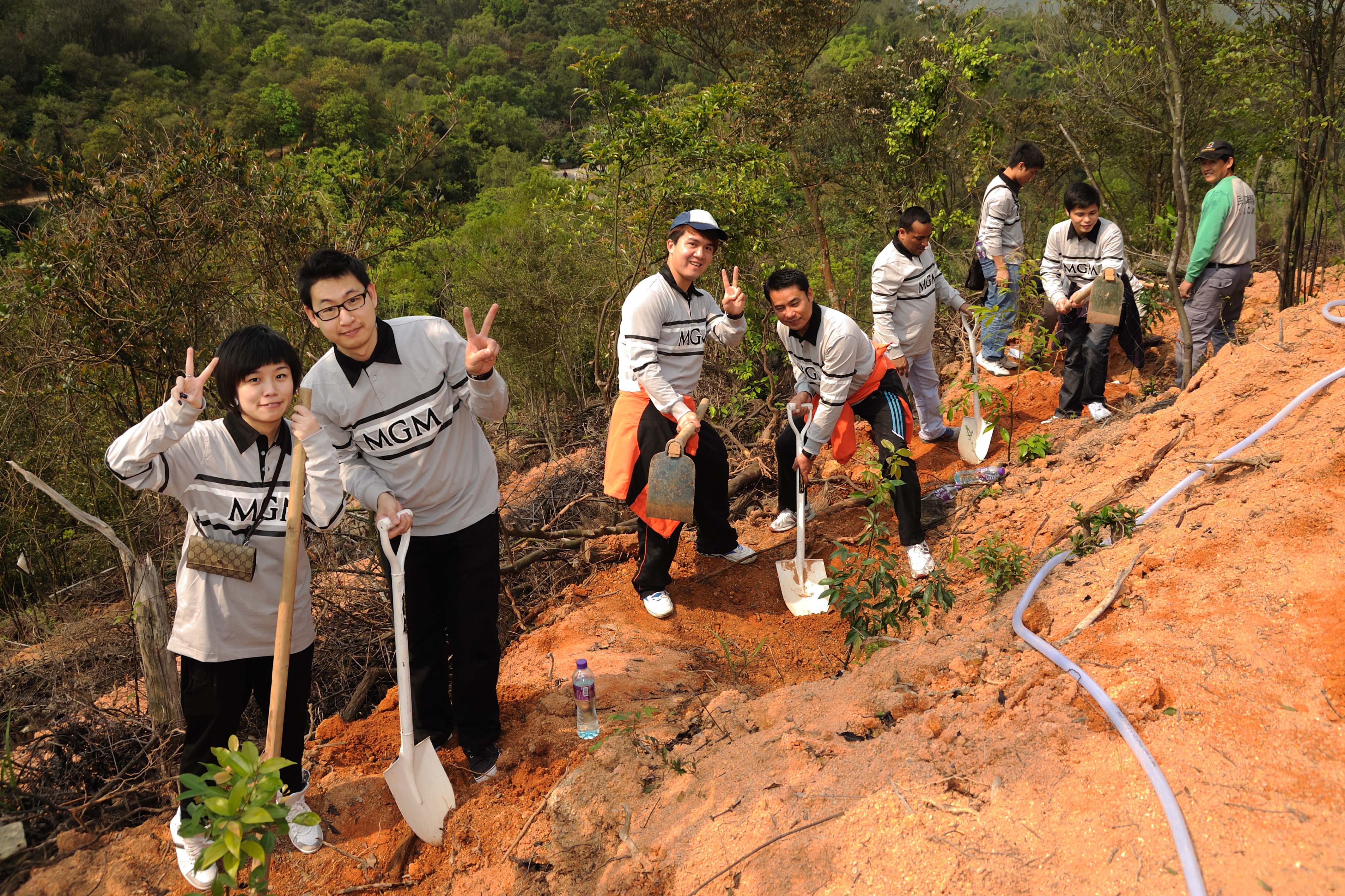 「世界植樹日」─團體植樹活動是自綠化週開啟至今,一直是具特殊意義的紀念性重點活動,近年的市民綠化意識日深,每年綠化週的推廣實功不可沒。今年的團體植樹活動,也是廣受歡迎,除了本澳的學校和團體踴躍支持,身體力行地為澳門的路環山區重植作出支持,近年進駐澳門,諸如中華人民共和國駐澳部隊人員及博彩公司美高梅金殿之員工團,也顯示出他們勇於肩負社會責任和義務,義不容辭地參與今年綠化週的團體植樹活動,實行「官民同心,共建美好綠色澳門。」