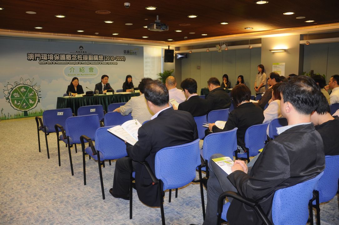 環保局張紹基局長、黃蔓葒副局長、環境規劃評估廳馮詠阡廳長今日下午假多功能室向社諮會委員介紹《澳門環境保護概念性規劃構想》(2010-2020)。會上,多位社諮會委員分別發表意見,包括提出應明確節能減排的量化、前瞻性目標,與世界接軌。他們認為環保工作應透過全民參與來推進,政府要發揮牽頭作用,例如從減少使用膠袋、停車熄匙等生活細節上,提升市民的環保意識。亦有委員提到除了要加強人才培訓外,亦可考慮在教育、醫療,甚至宗教等各專業範疇上,推動環保概念。