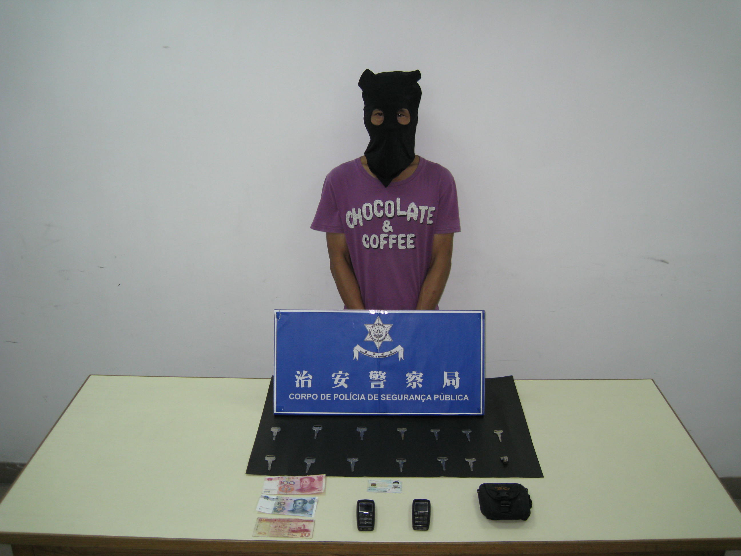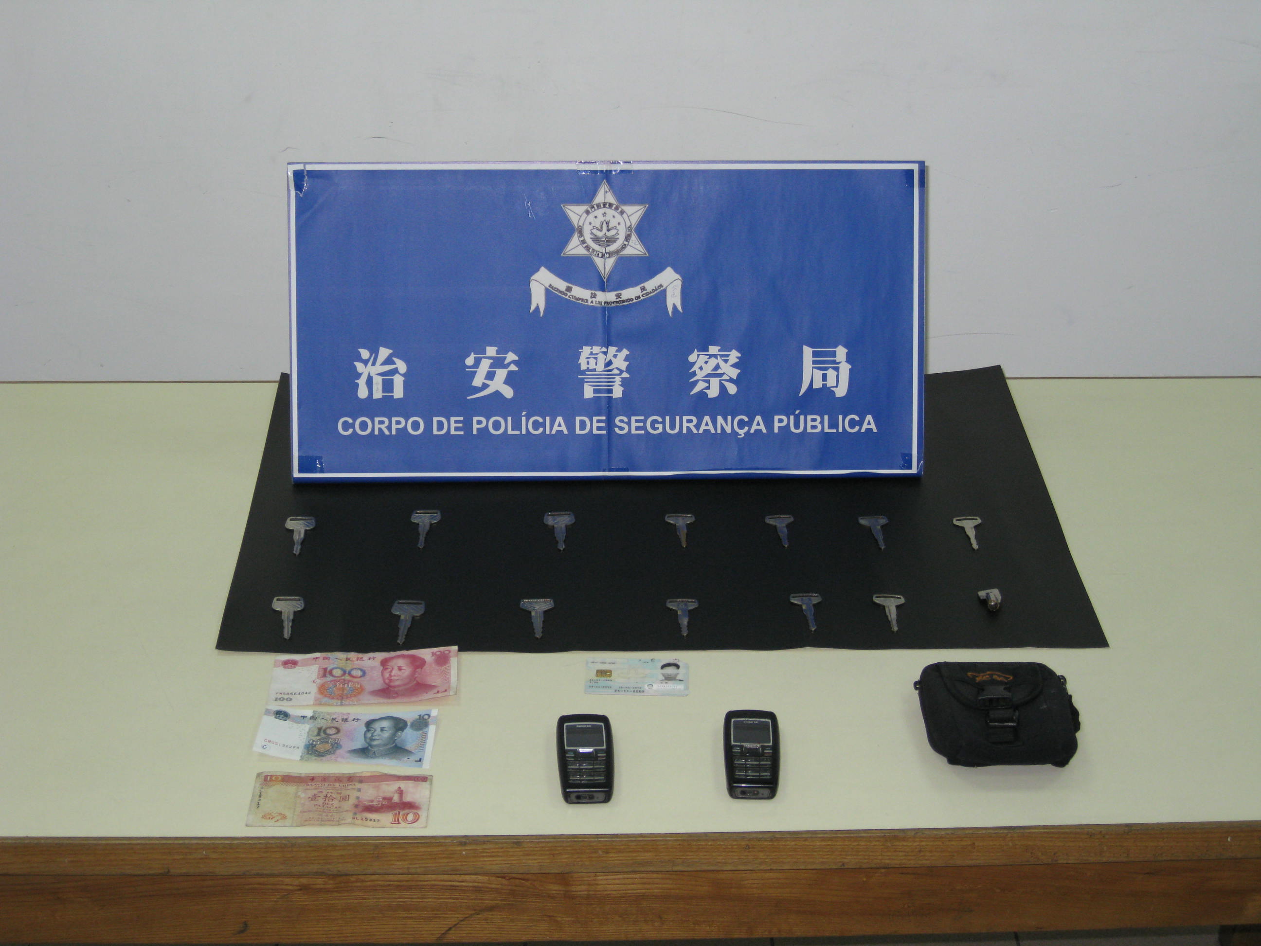 鑒於近日發生多宗爆竊車內財物的案件,治安警察局已在各區加派人員巡邏。17日下午7時30分在爹美刁施拿地大馬路近水上街市發現一可疑人士於街上徘徊,故警員立即展開跟蹤及監視行動。約下午8時50分,警員在馬場海邊馬路目睹疑人以假鎖匙打開一輛輕型汽車車門進入並在車箱內搜索,然後再打開車尾箱,警員立即上前截查,發現車輛左後車門雨擋被毀損,並於疑人身上搜獲多條改裝的汽車鎖匙,及經警員查問後,有關疑人承認盜竊車內財物。治安警察局懷疑疑人涉及近期多宗爆竊車內財物的案件,疑人姓李,本澳居民,46歲,於2010年09月18日上午移交檢察院處理。