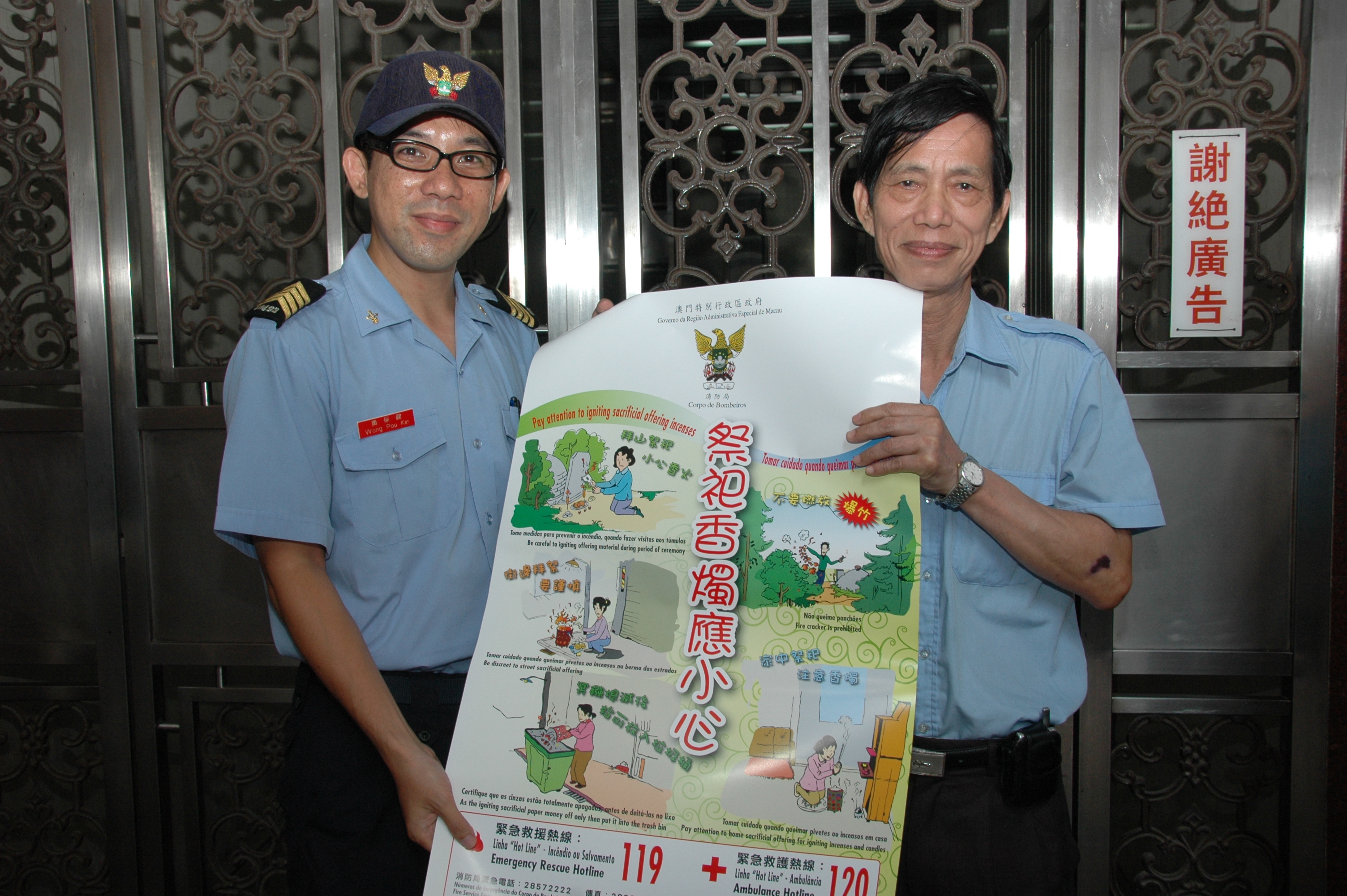 農曆九月初九重陽節期間,市民都會按照中國全統習俗登高並祭祀先人,但現處深秋,發生火災的風險相對提高,消防局有見及此,為避免市民因祭祀而造成火災,消防局將採取一系列相應措施,其中包括於10月16日(重陽節當日)安排消防車輛在廟宇、公眾墳場一帶進行不定時巡邏,以預防火災發生及提高滅火效率;同時,消防局為加強市民的防火安全意識,已於10月12至15日,分別在新橋區、高士德及北區進行為題“祭祀勿輕視”的防火宣傳活動,從而提高居民的消防安全意識。