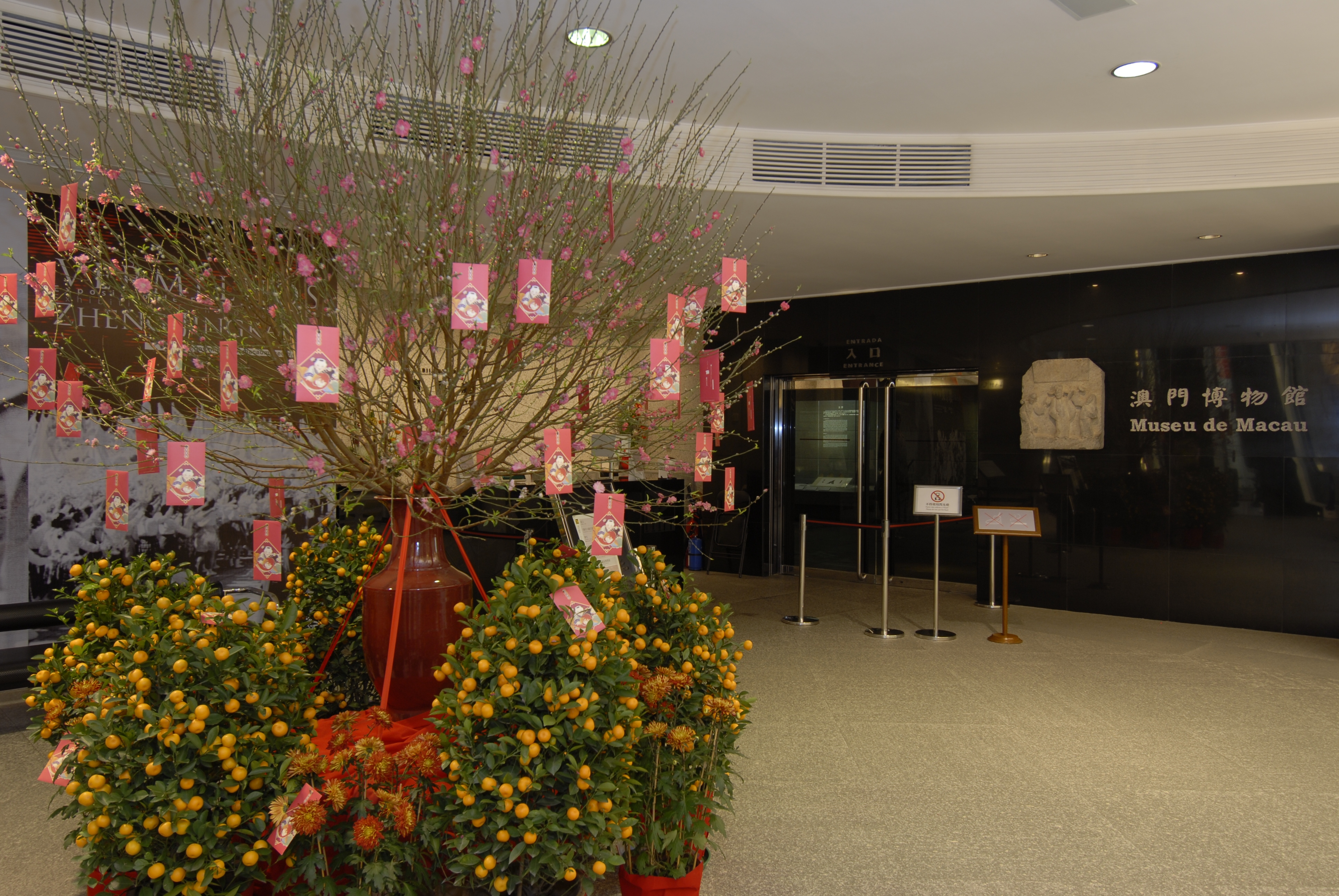 澳門博物館及附屬的天主教藝術博物館、觀音蓮花苑、典當業展示館,以及位於東望洋堡壘內的聖母雪地殿聖堂, 於二月二日 (年三十) 及春節期間(二月三日至六日)將照常向公眾開放。澳門博物館目前正設有《道韻天音——澳門道教科儀音樂》專題展,歡迎各界人士到場參觀。“澳門道教科儀音樂”在2009年成為澳門非物質文化遺產項目。為了發掘及傳遞保護文化遺產的訊息,博物館特舉辦是次展覽。同時,博物館現正播放國務院總理溫家寶於去年訪澳時與青少年對話的錄影片段。訪客可透過片段重溫總理親切和藹的長者風範,了解其對青少年的關懷和期望。二月三日至六日 (年初一至年初四),澳門市民均可免費參觀澳門博物館。日常逢周日市民可憑身分證或學生證免費參觀。