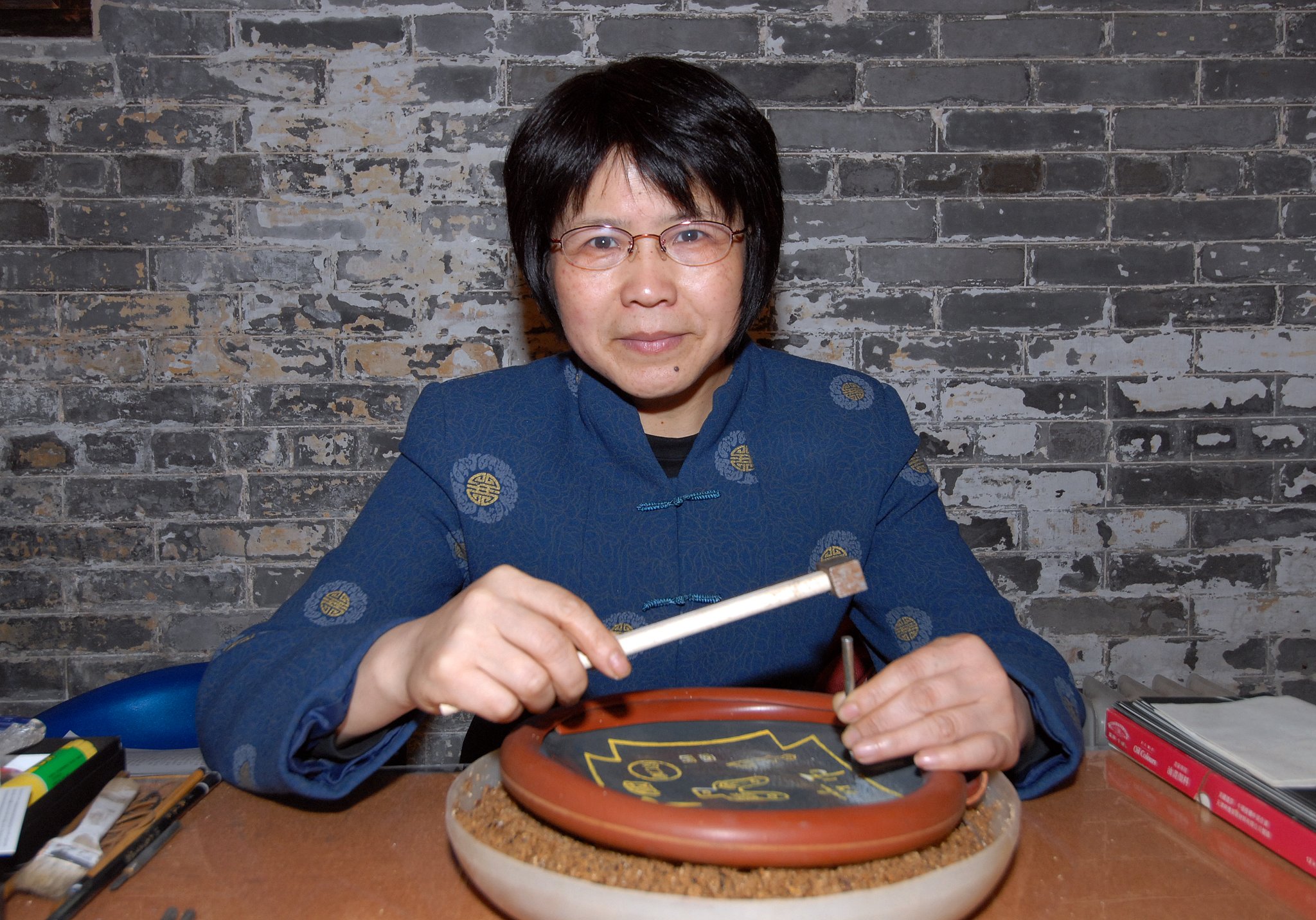 另一山東著名工藝家齊征,將與大眾分享其刻瓷的出色創作。刻瓷藝術產生於宋代,它是用金剛刀或鎢鋼刀在高温燒成的素面瓷釉上鑿刻出各種美麗圖案和文字的藝術。齊征的刻瓷技藝,在繼承傳統基礎上大膽創新,多採用黑色瓷盤作為材料,作品高雅,刀法創新,用料和構思奇巧,題材活靈活現,以及主題深刻富哲理之情。齊征在介紹時,更讚譽澳門與其作品《荷花》一樣具有高雅的品質,人文氣息濃厚,喜與本澳市民分享,望來澳期間能多與本澳市民及遊客交流,推廣刻瓷工藝。
